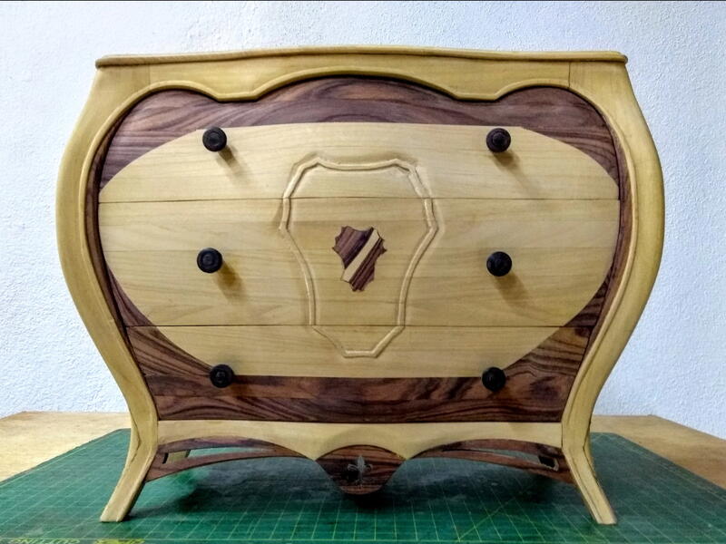 Mini Cômod Bombe de Marfim Com Marchetaria Jacarandá...