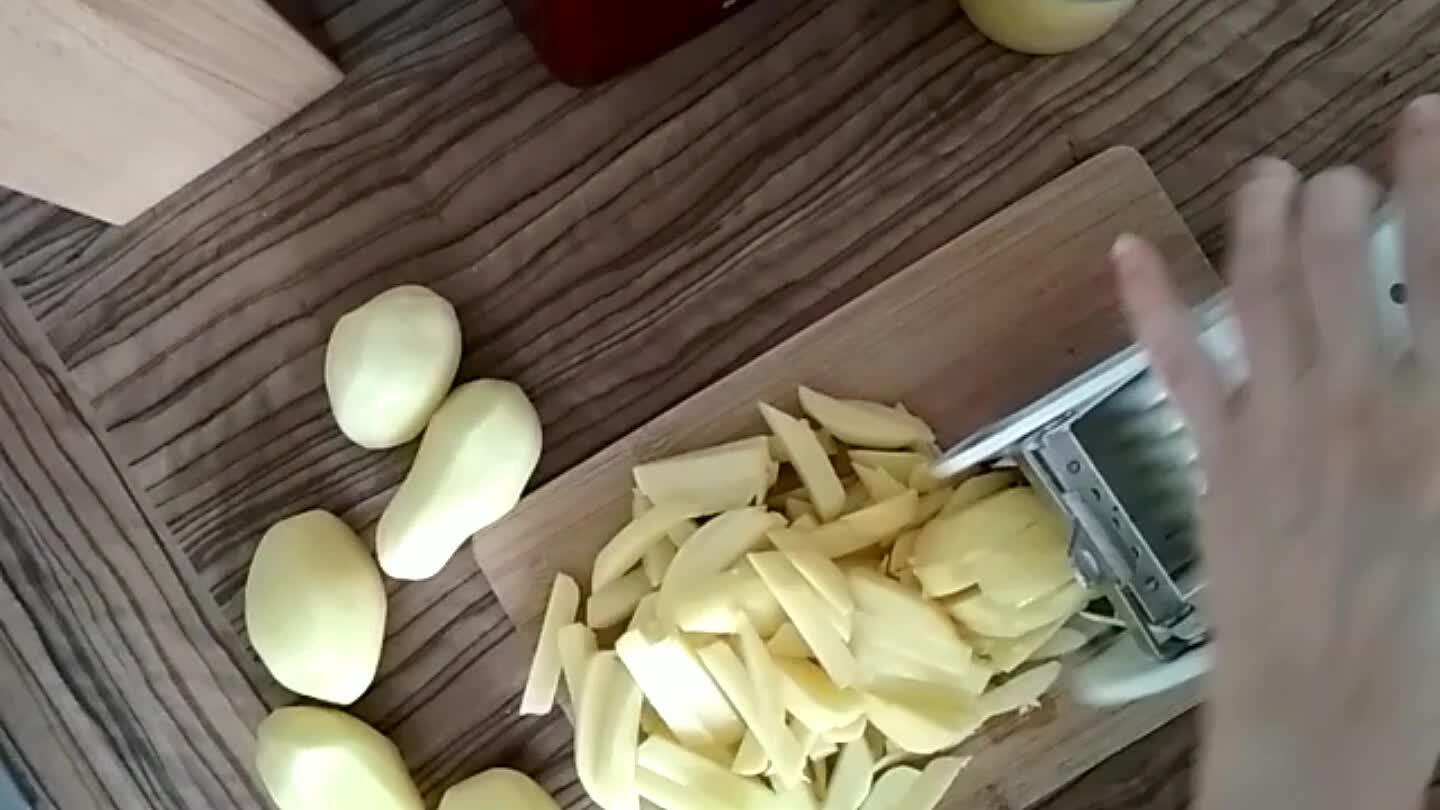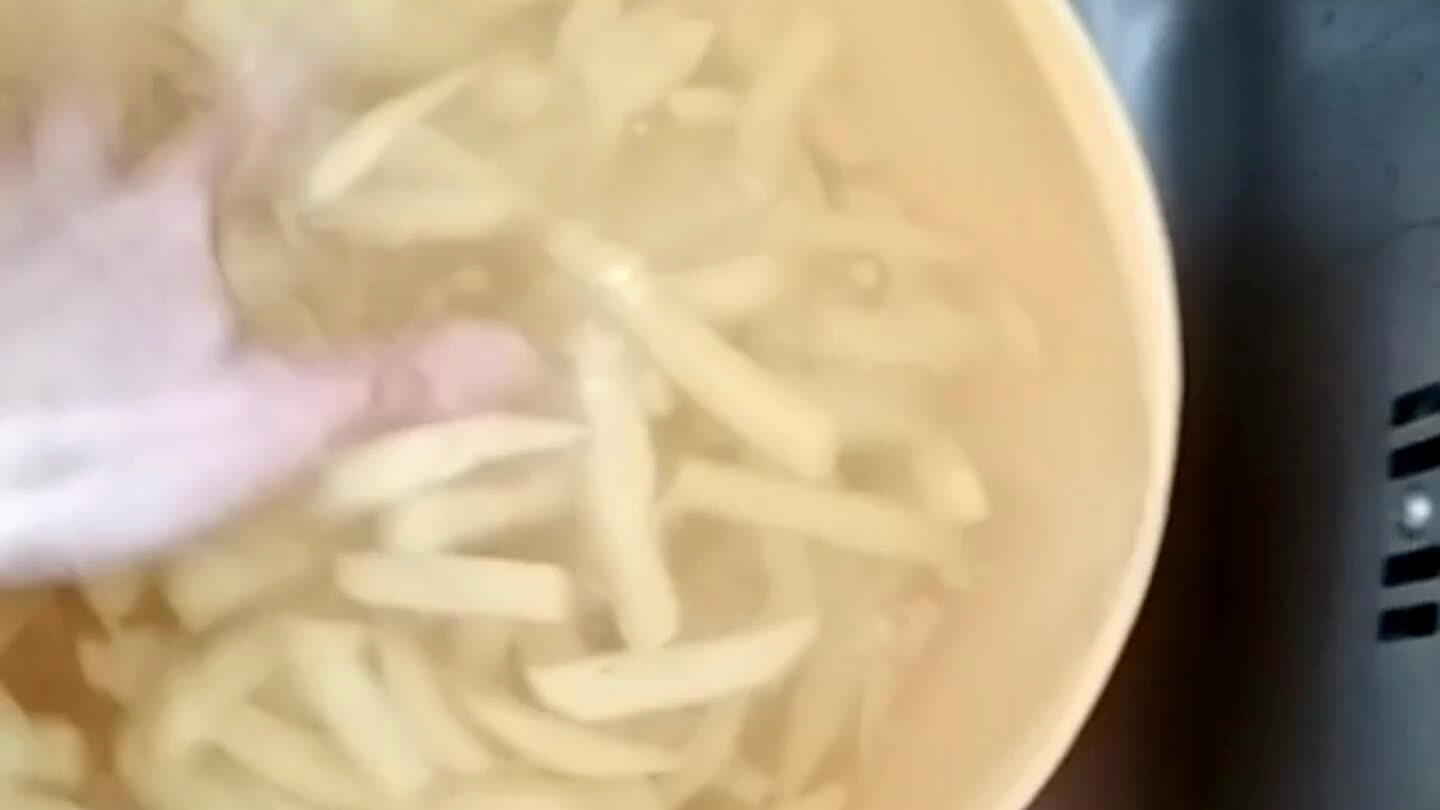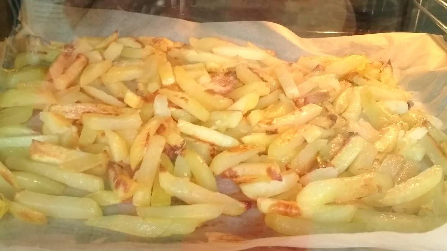 Hotové hranolky osolit.
