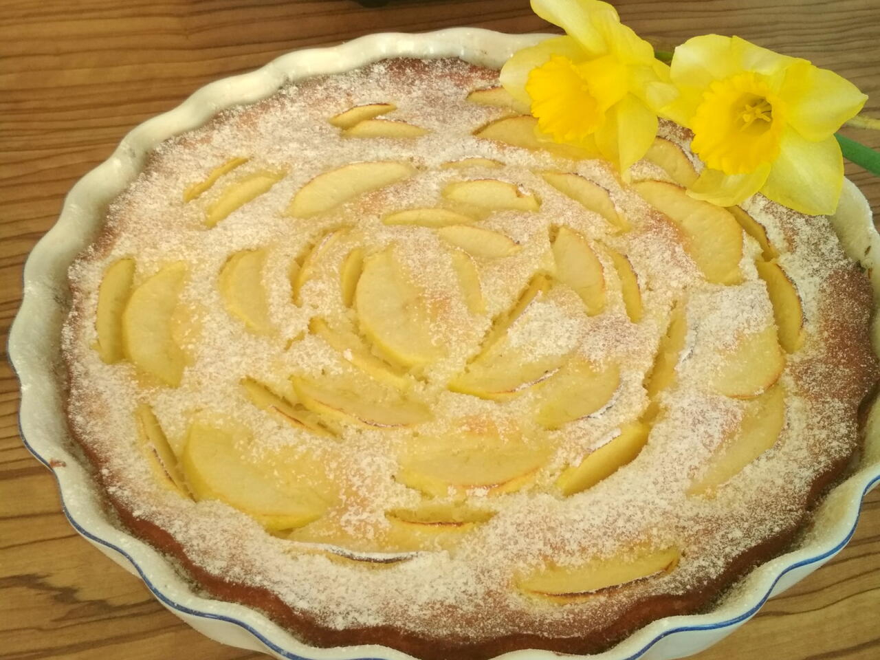 Na těsto naskládáme jablka a vložíme do vyhřáté trouby.