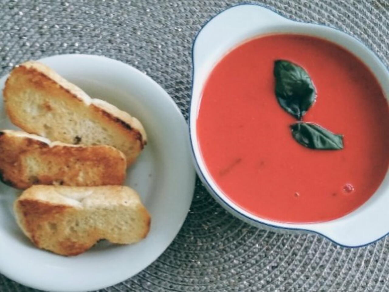 Rozmixovanou polévku dochutíme pepřem, solí, orgánem a bazalkou. Podáváme s opečeným pečivem.