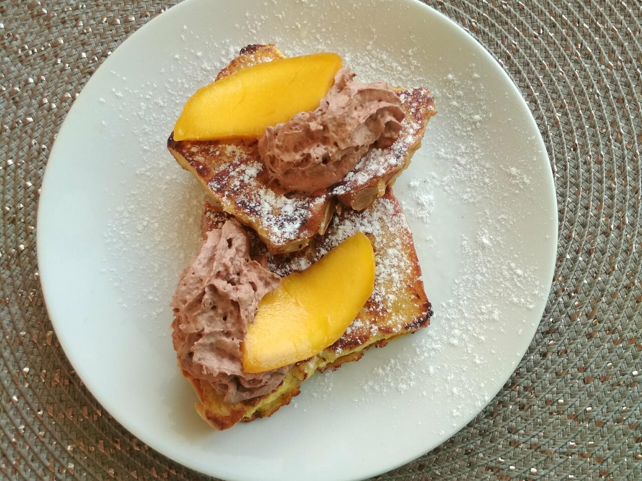 ...a snažíme po obou stranách. Pocukrujeme moučkovým cukrem a nazdobíme podle chuti šlehačkou, ovocem javorovým sirupem atd.