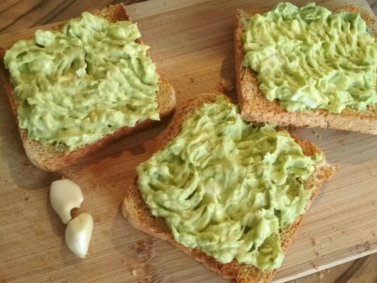 Zlehka promíchat a natřít na topinky (tousty) potřené česnekem.
