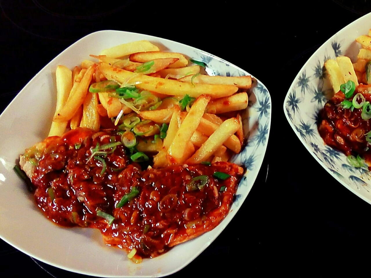 Vepřové maso si nakrájíme na plátky, mírně naklepeme jen kloubama, dle potřeby je nařízneme, aby se nám nekroutily, osolíme je a potřeme utřeným česnekem.