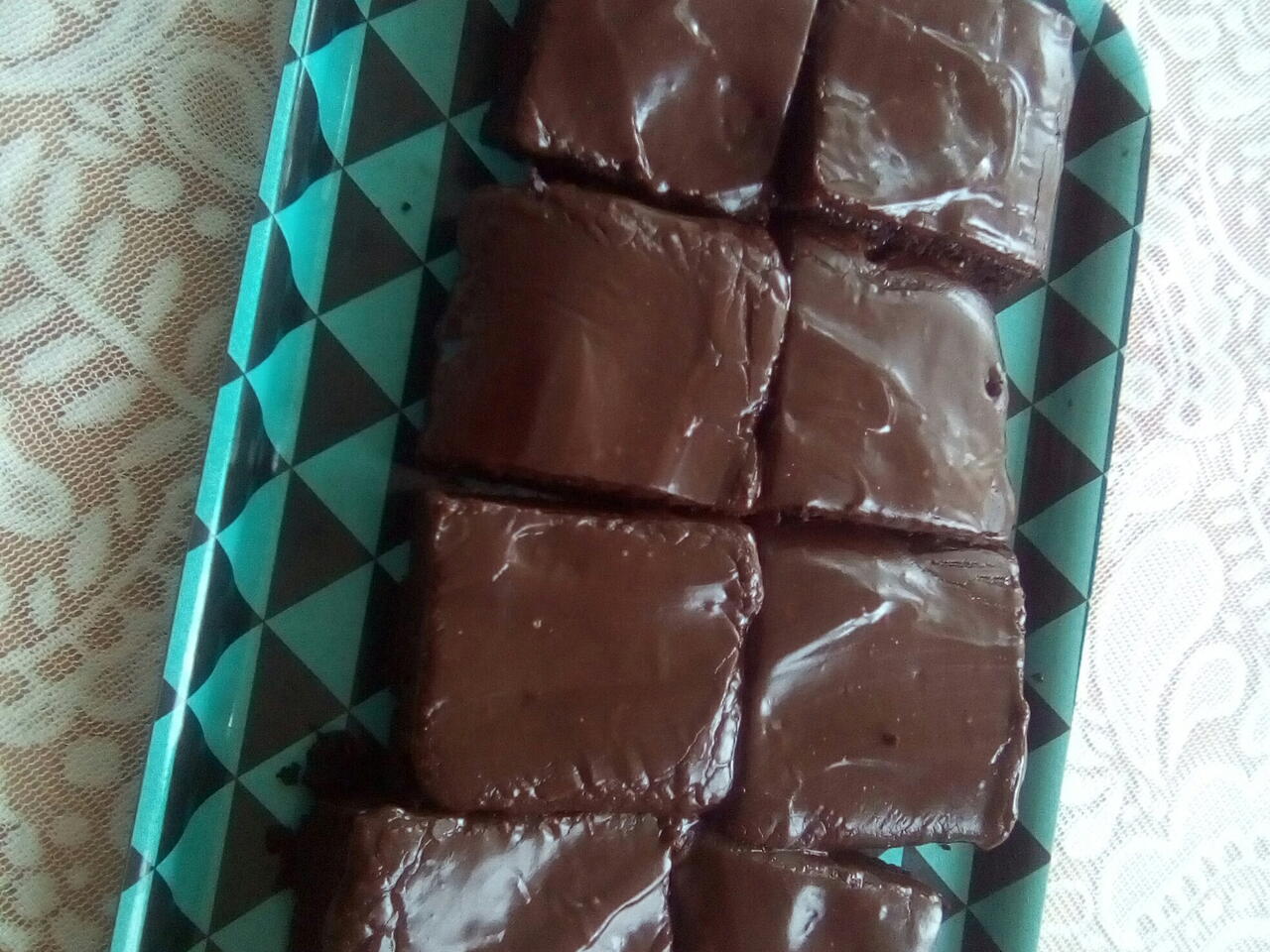 Butter und Zartbitter schmelzen🔼Eier, Zucker,VZ und Prise Salz schaumig rühren 🔼 Schokosauce,Mehl und Kakao darunter rühren und bei 180 Grad für 25 min backen.🔼 Auskühlen lassen und dann die Glasur 100 Vollmilch, 50 Zartbitter und Sahne geschmolzen darüber.