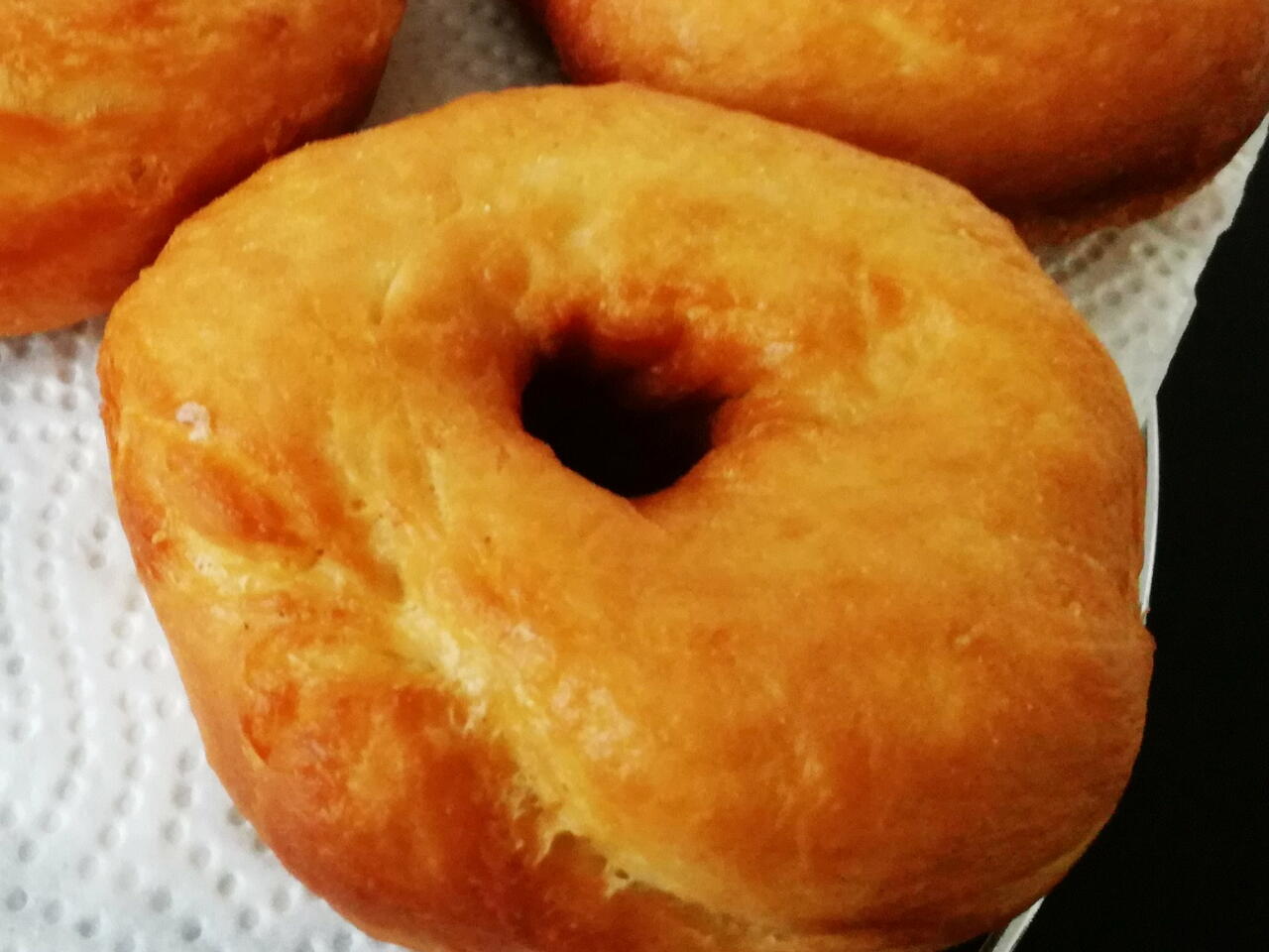 Die Donuts für 3 min im öl frittieren und auf Küchenpapier abtropfen lassen.