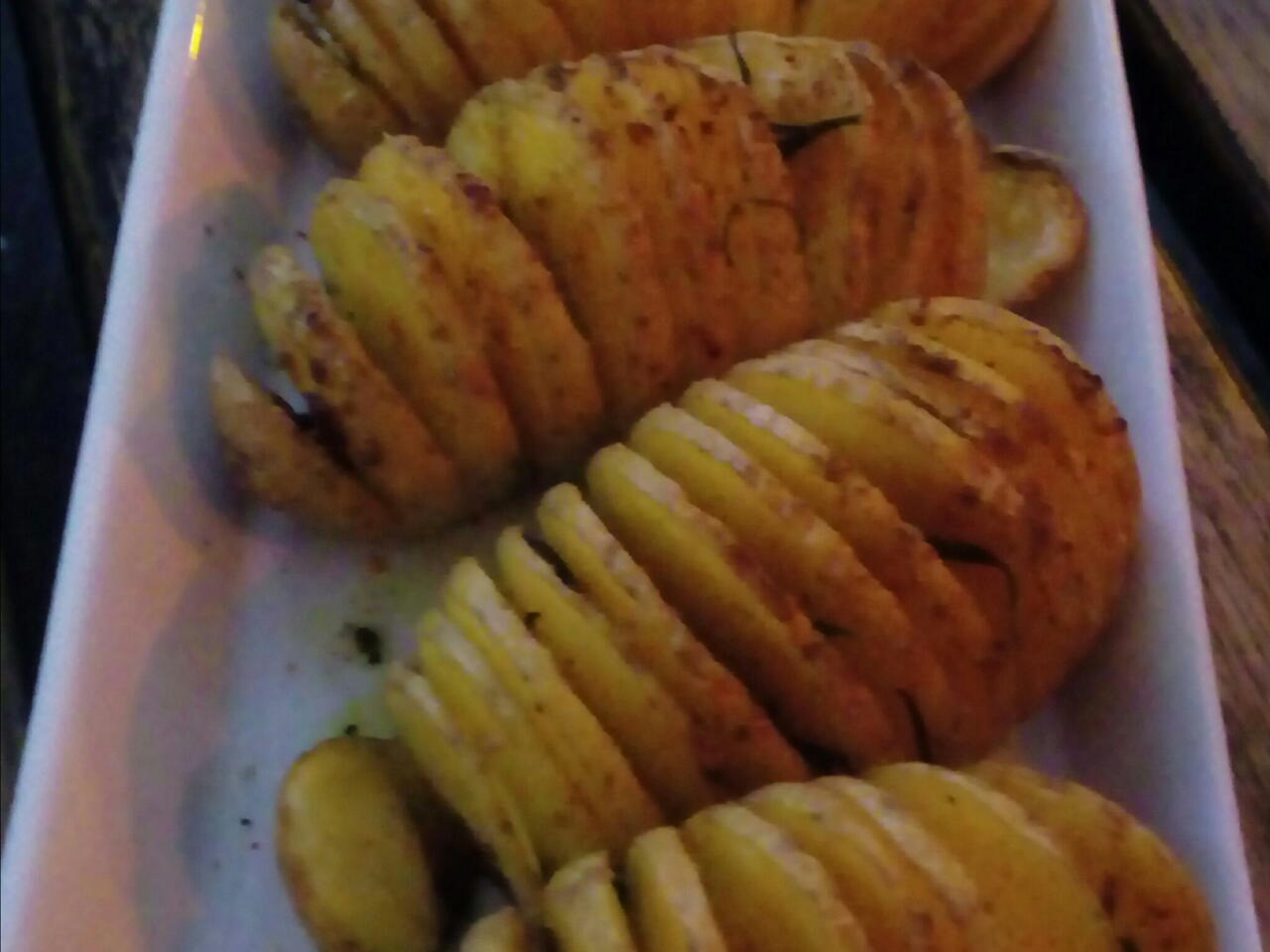 Kartoffeln zwischen zwei Essstäbchen legen und bis zu diesen einschneiden. Durch die Stäbchen schneidet man nicht ganz durch. Kartoffeln etwas auffächern, Gewürze und Öl darüber und ca. 40 Minuten bei 180 Grad Ober/Unterhitze backen.