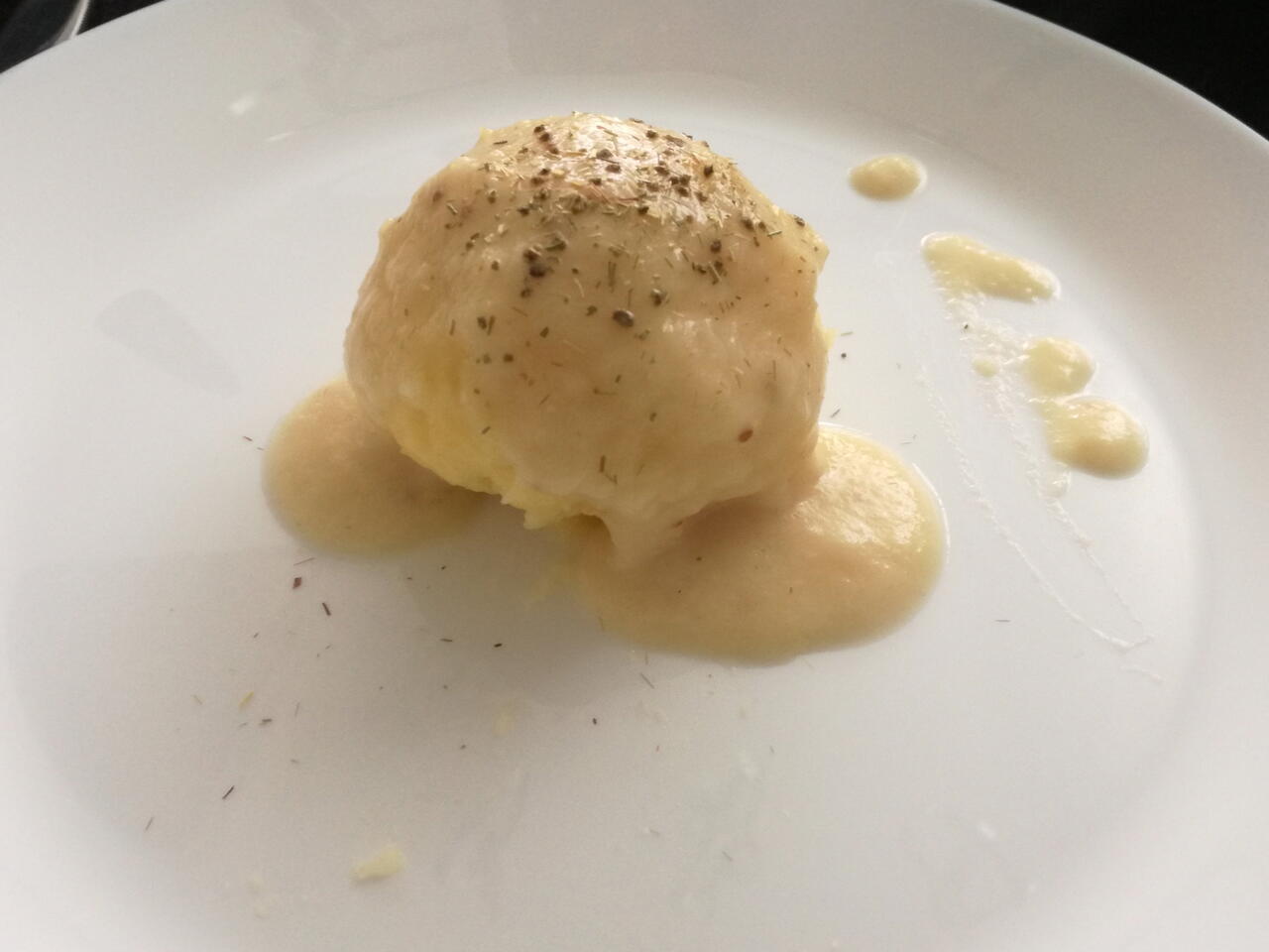 Die fertigen Knödel auf einem Teller anrichten und mit Sauce garnieren, ein wenig Zitronengras darüber streuen und genießen;).