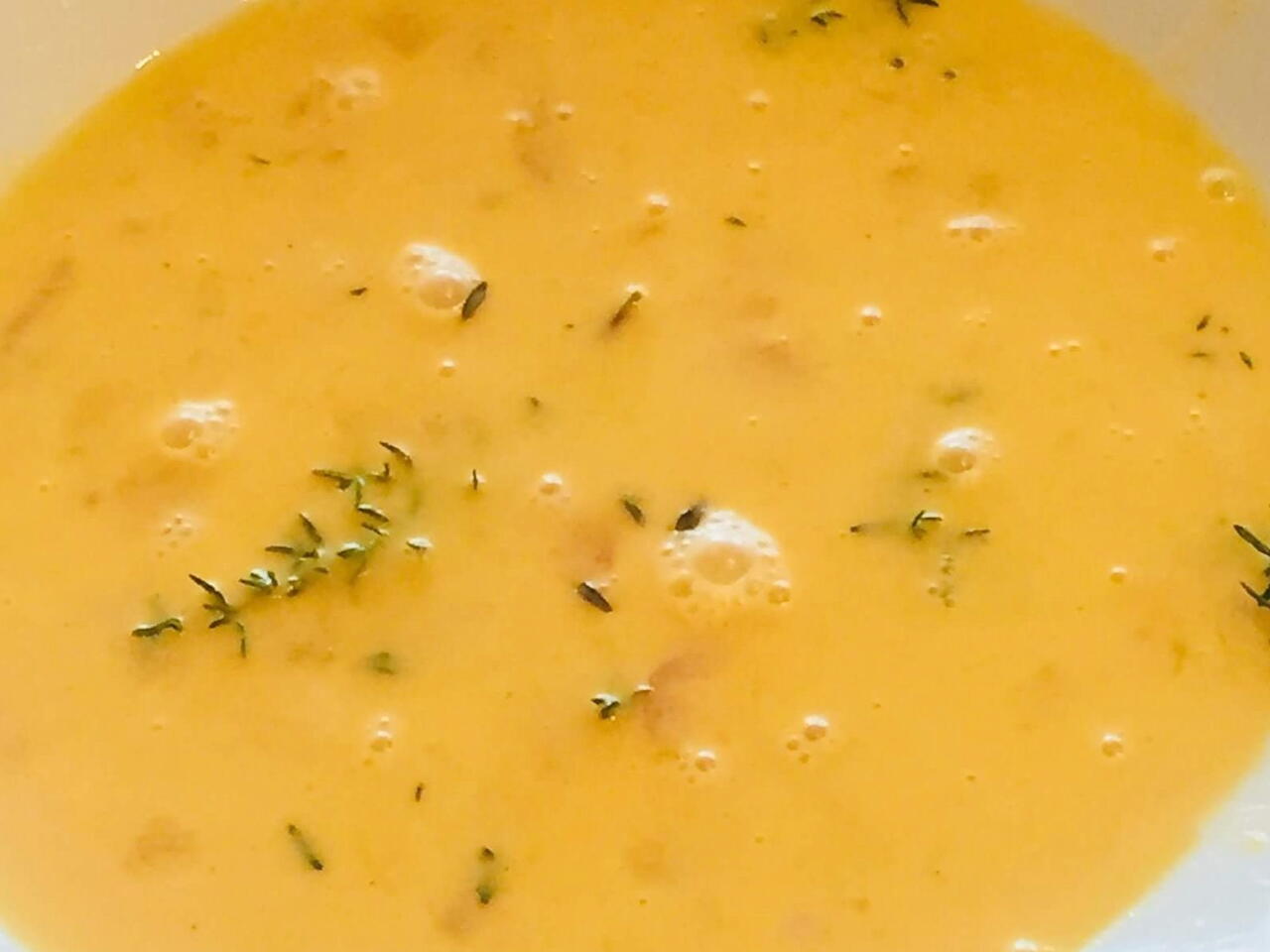 alles mit Fond, abgespültem Thymian, Gewürzen und Ingwer und ca. 500 ml Wasser 15 - 20 Minuten weichkochen, nach Belieben mehr oder weniger pürieren, Kokosmilch einrühren, abschmecken und eventuell mit ein paar Tropfen Kürbis-Öl heiss servieren