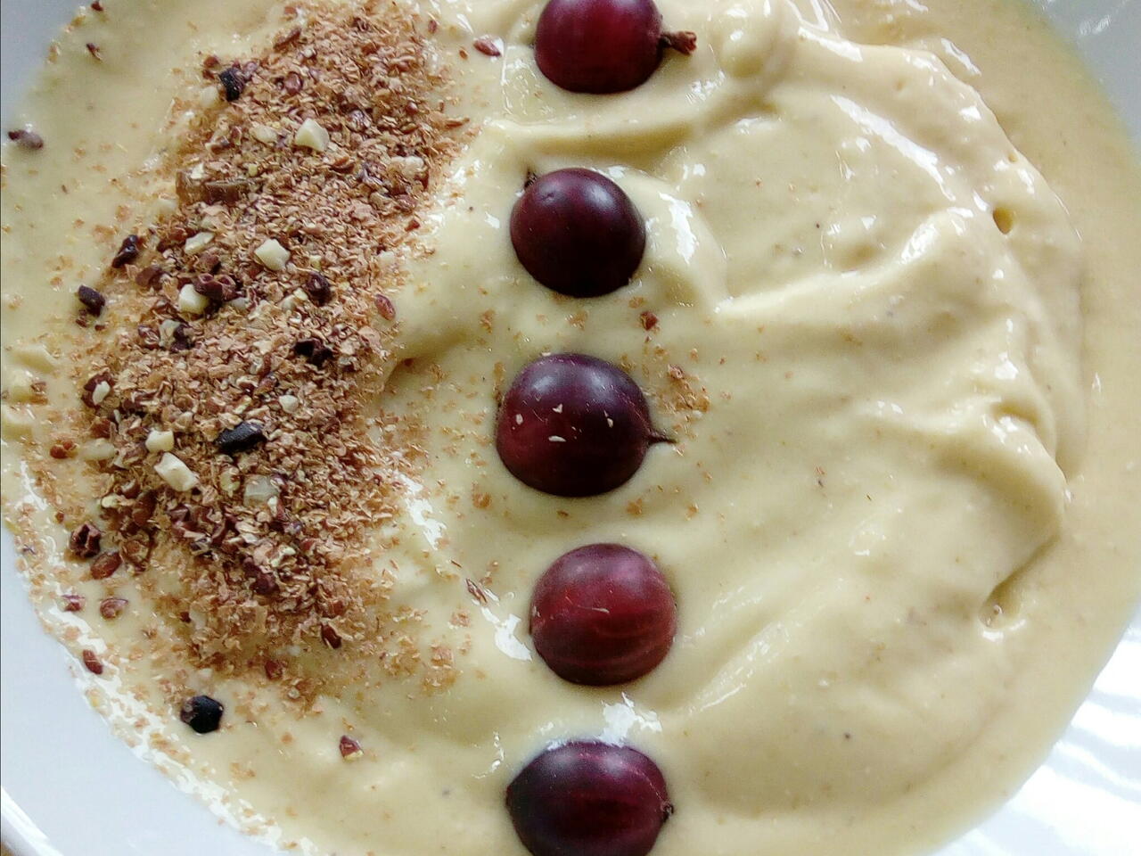 Alles außer der Deko/Topping in Mixer zu einer Icecream vermixen. Deko und Topping darauf und genießen.