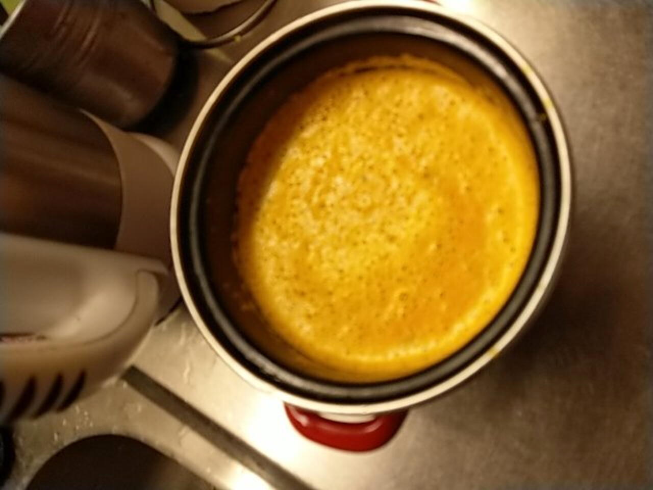 Jetz mit den Pürierstab Die Paprika in eine flüssigmasse machen. Ein Becher Schmand dazu tun. Und Noch mal pürieren.