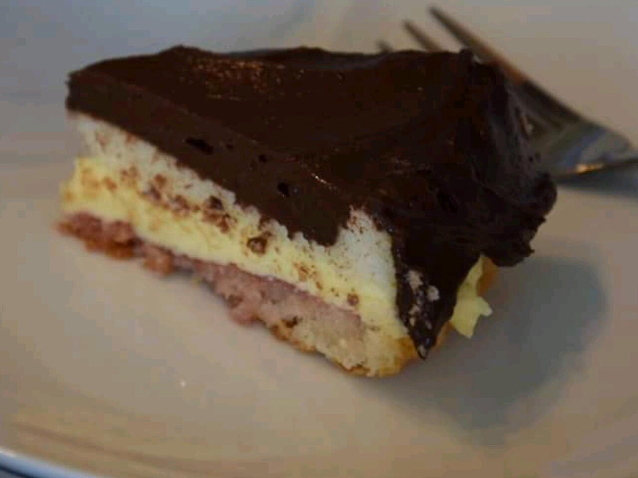 Die helle Creme auf die Marmelade steichen, Deckel aufsetzen und mit der restlichen Schokocreme rundherum bestreichen.