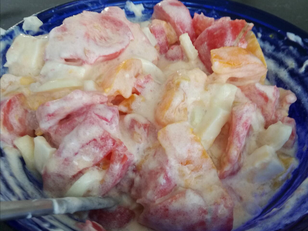 Der Salat kann vorher vorbereitet werden ist aber nicht nötig , da er schnell zum zubereiten ist . Salz und Schmand erst vor dem Verzehr dazugeben, sonst lassen die Tomaten zu viel Wasser. 🍅