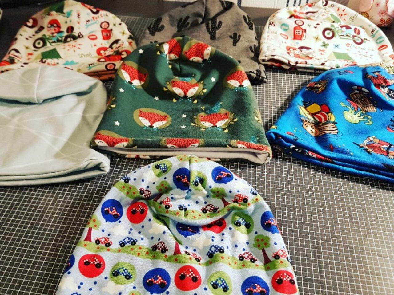 Seiten zusammen nähen und das Kopfteil. An der inneren Mützen ander Seite eine Wendeöffnung lassen