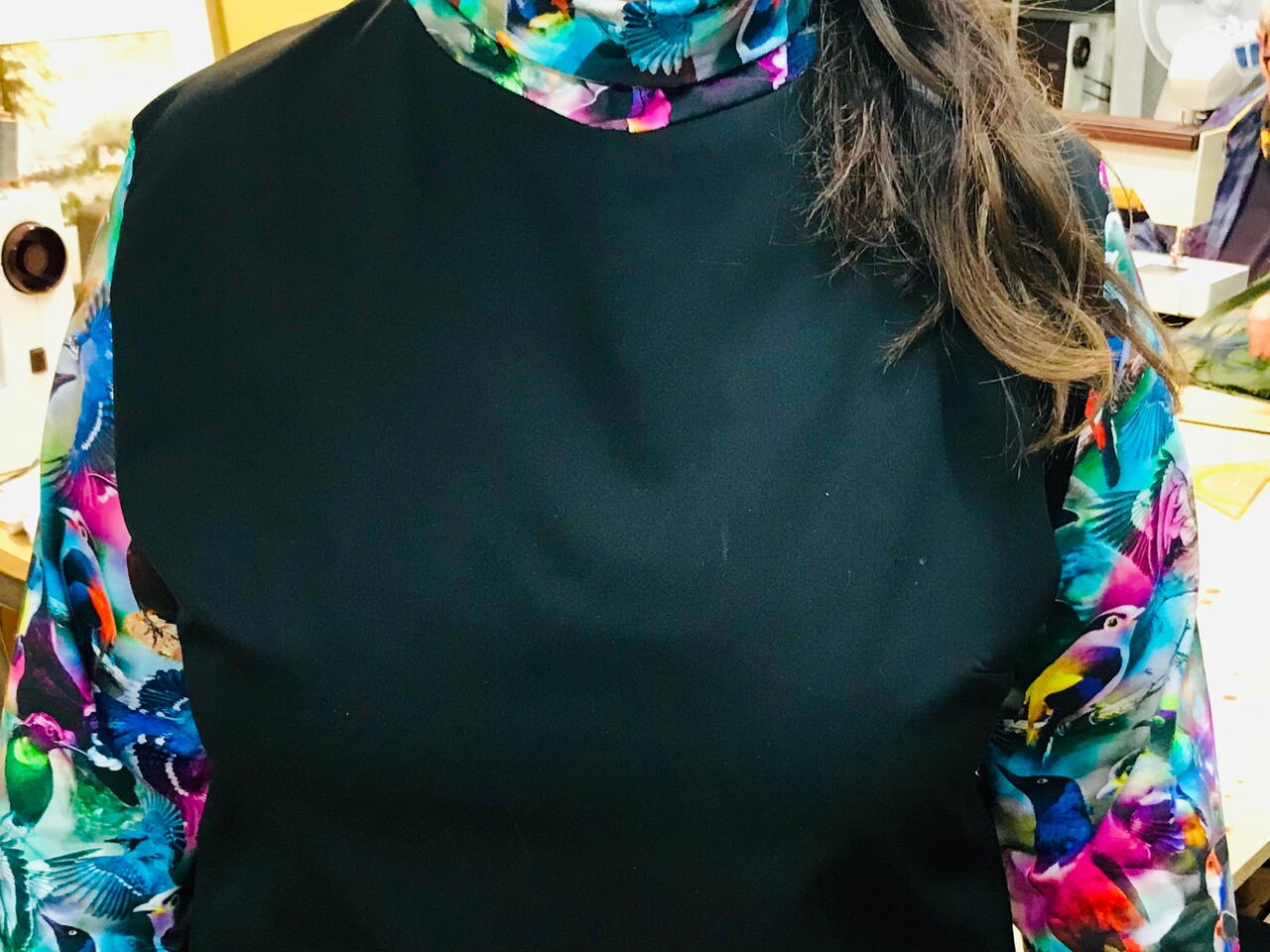 Schwarzer dehnbarer Stoff 1m Printstoff Deiner Wahl für Ärmel und Kragen 50cm