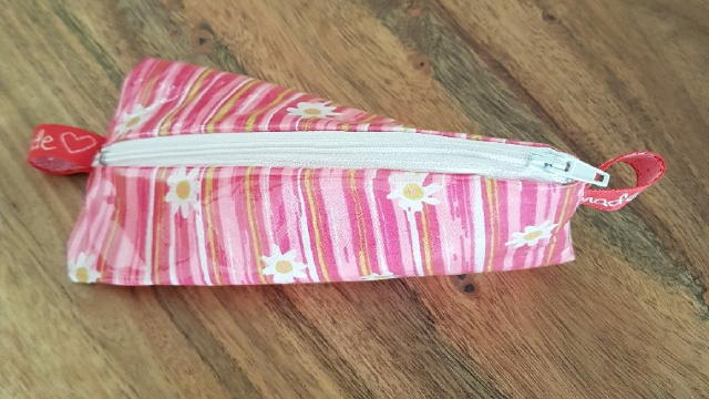 Reißverschlussende und die kleine Schlaufe übereinander legen und zusammennähen