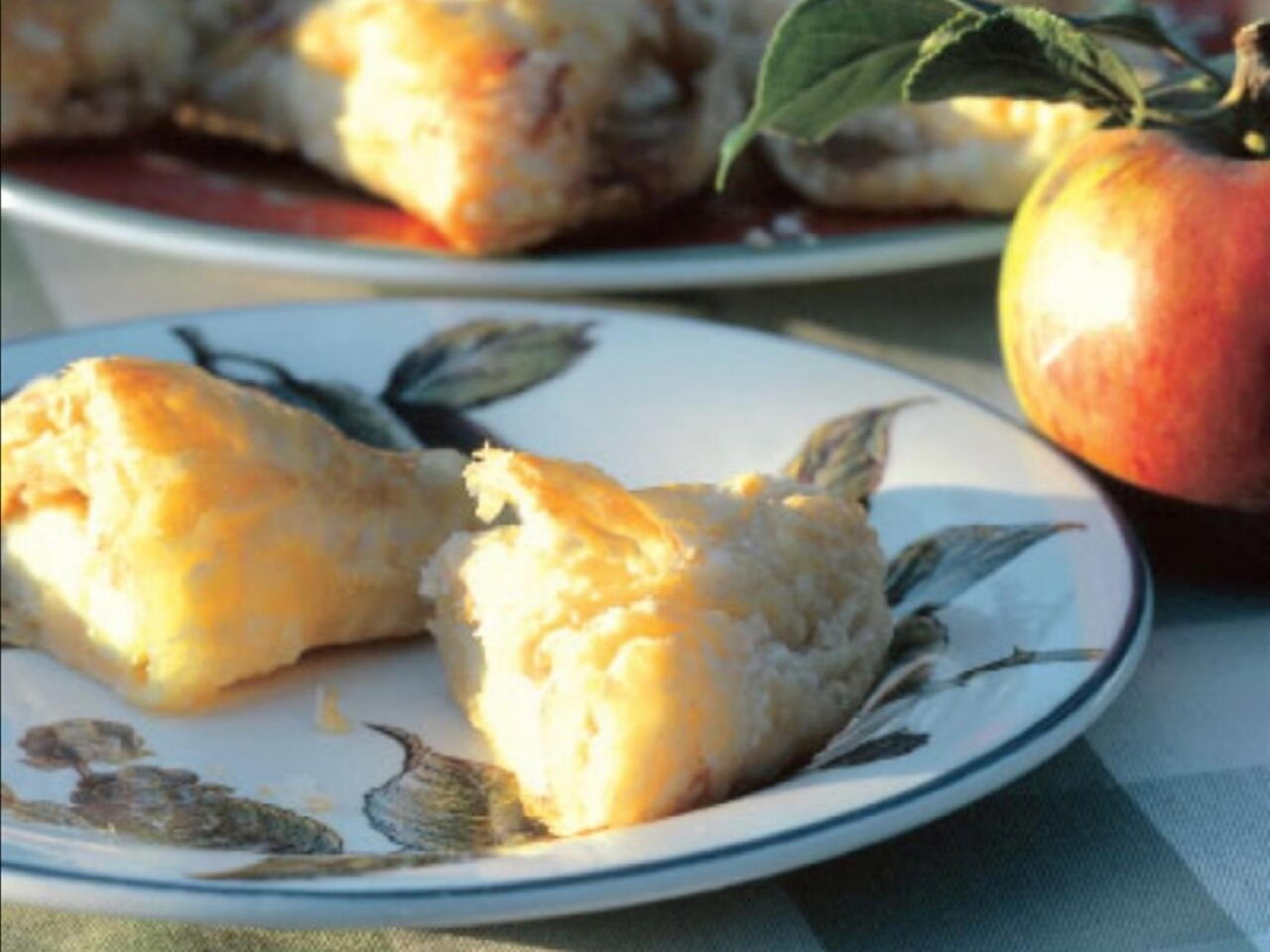 Kuumuta ahi 200°C-ni. Rulli tainas lahti ja lõika kuueks ruuduks. Koori ja poolita õunad, eemalda südamikud. Täidise jaoks sega kohupiim, suhkur, muna, tärklis ja vanillsuhkur. Määri igale ruudule täidist ja pane sellele õunapoolik. Puista üle fariinsuhkru ja kaneeliga. Tõsta ruudu neli nurka üles kokku ja pigista otsad kinni. Määri munaga ja küpseta ahjus 30 minutit.