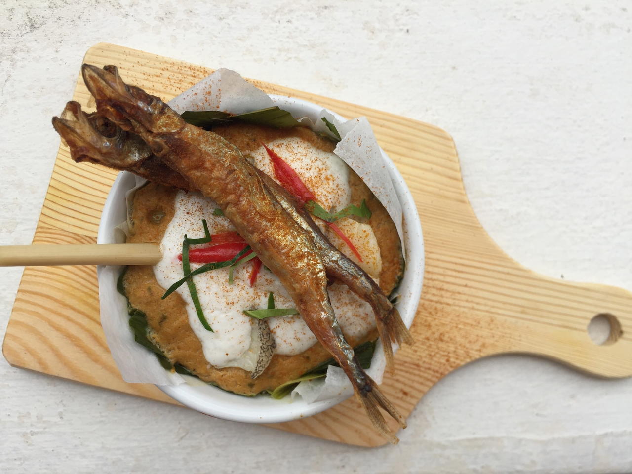 Hor Mok Thai Otak Otak Top Coconut Milk And Fried Curried Shishamo