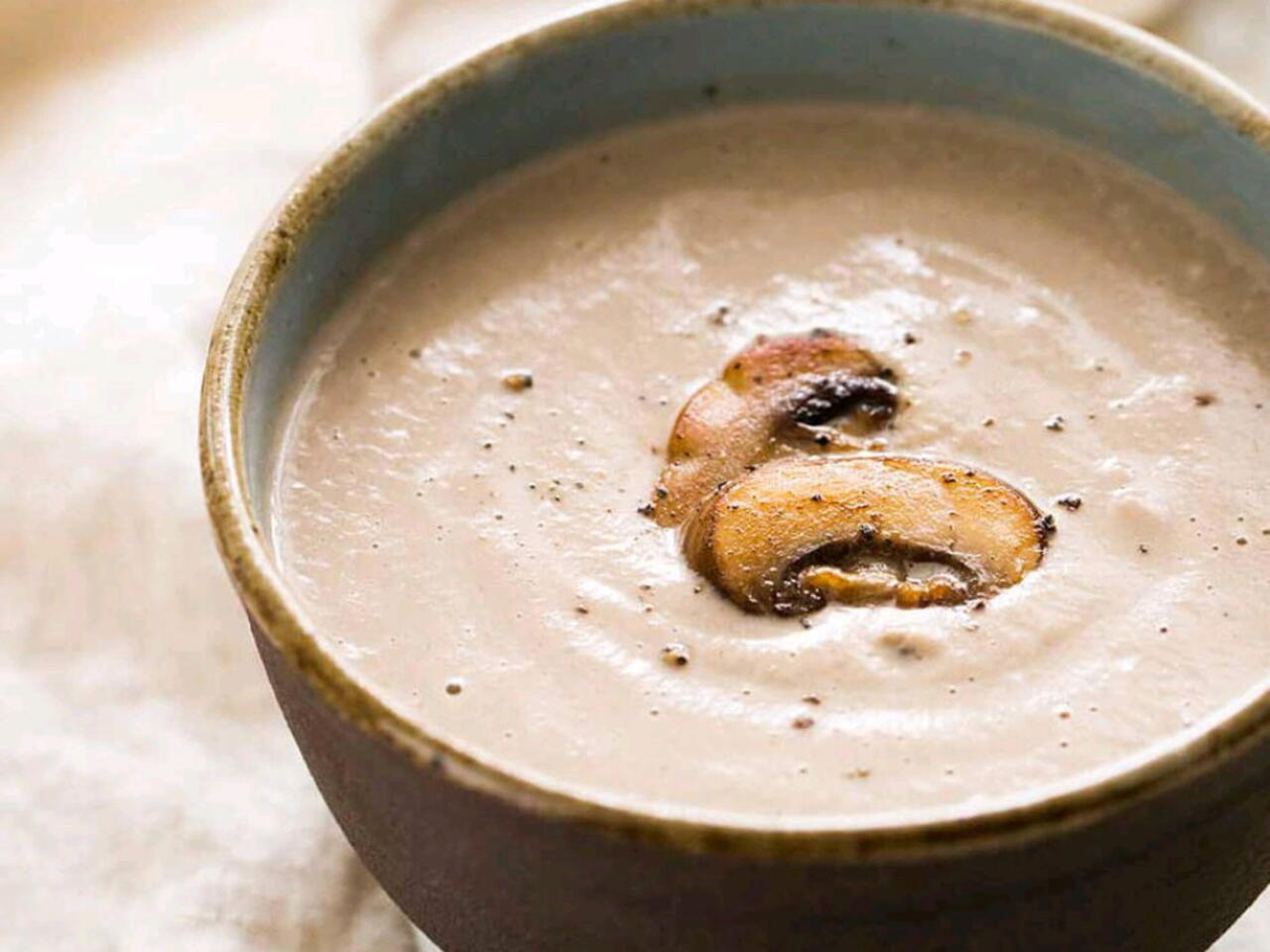 Freír los champiñones y licuarlos con agua, fondo o leche. Colar.
