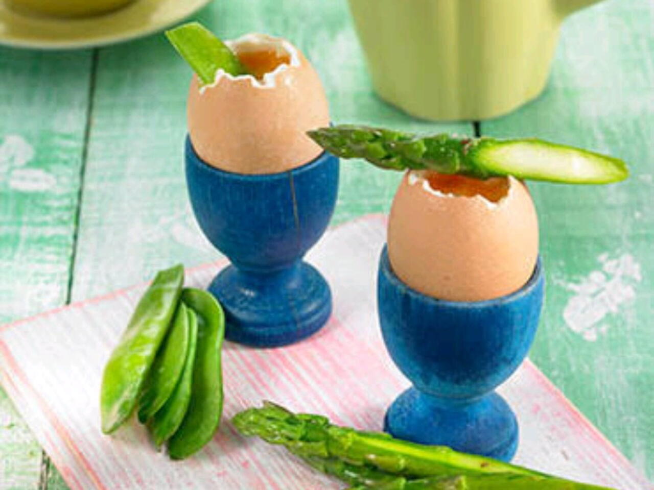Retirar, servir en una huevera en su cascarón, acompañado del pan y verduras.
