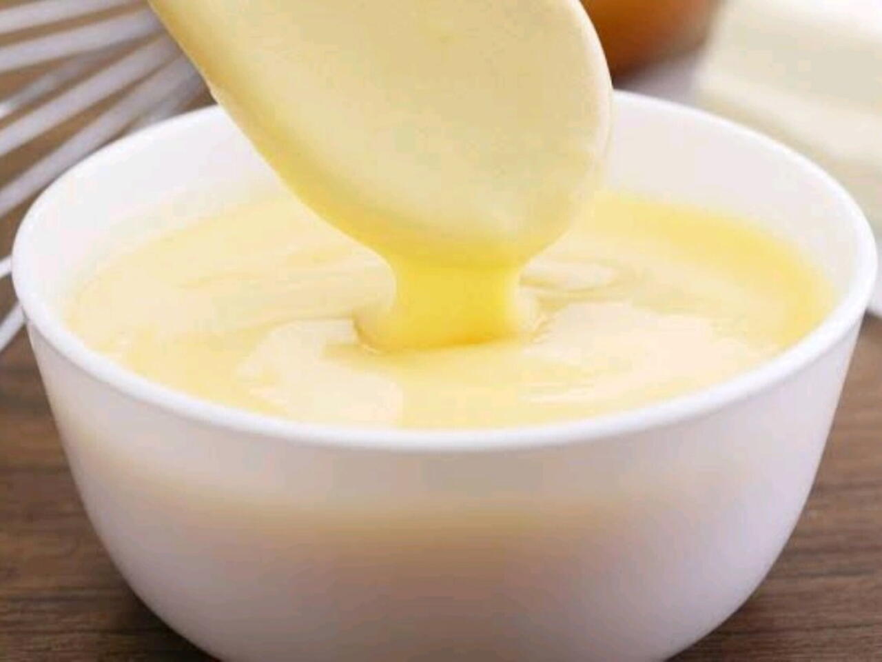 Agregar el ghee en forma de hilo sin dejar de batir.