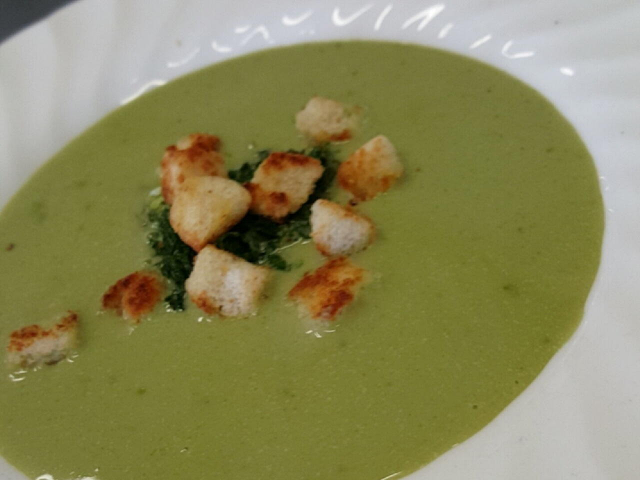 Saltear el pan cortado en cuadros en mantequilla, hasta hacer crutones.