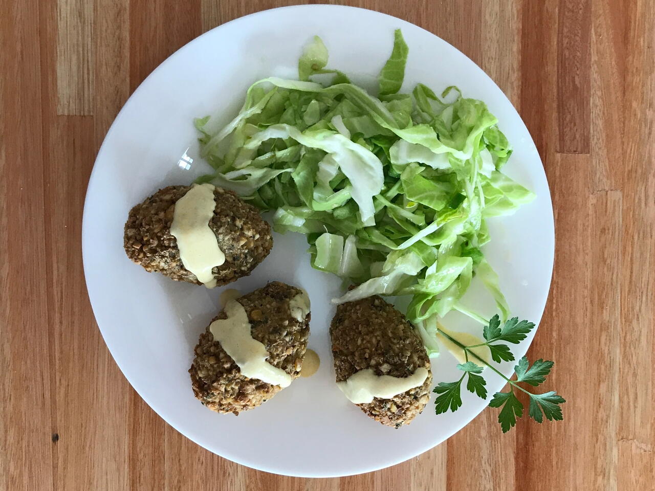 En un recipiente amasar todo y agregar perejil, sal y pimienta a gusto. Formar bolitas.