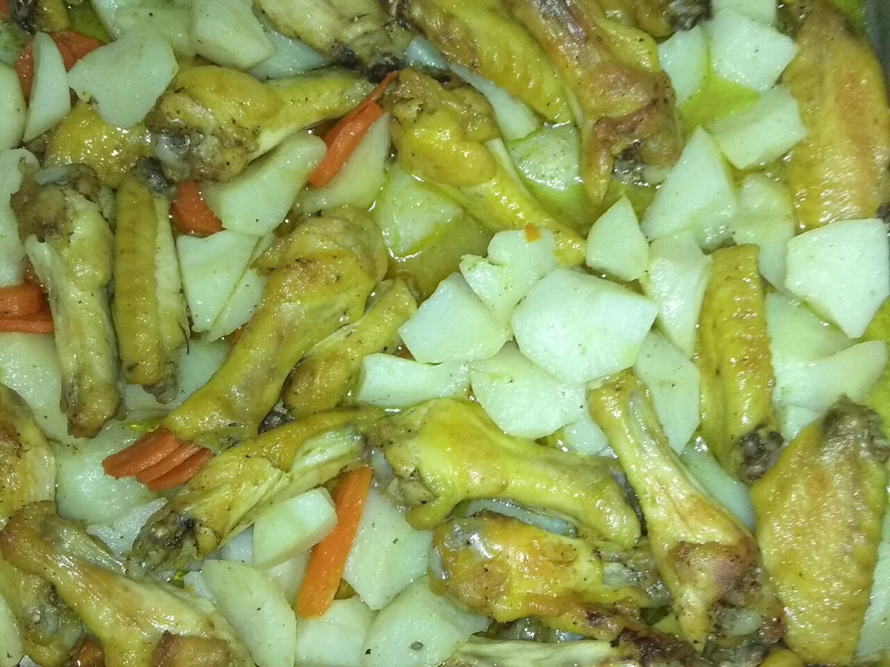 Alitas de Pollo Con Patatas Al Horno Al Curri
