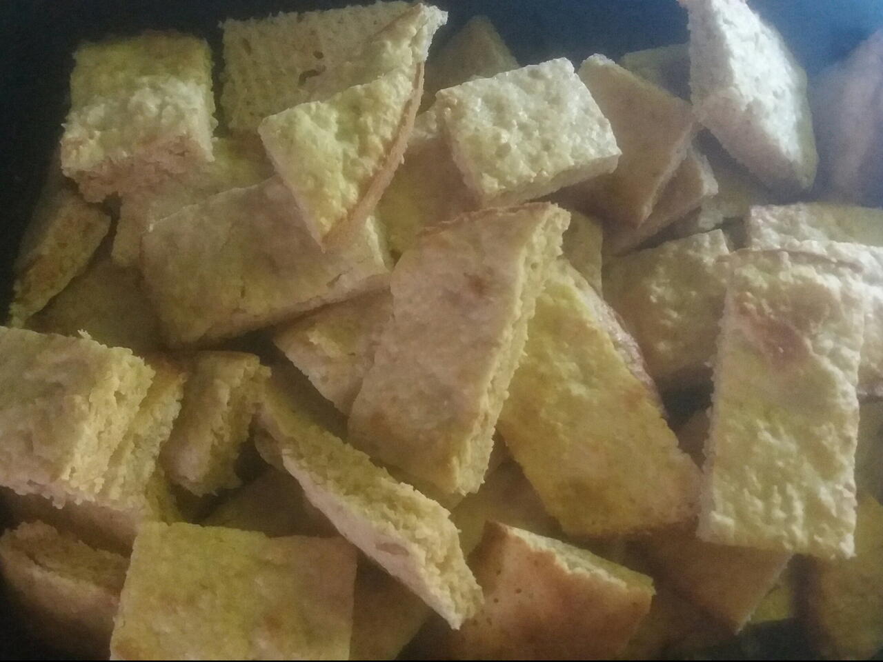 Por último colocar la preparación en una azadera, al menos de alto de preparación debe haber un centímetro, el tiempo varía entre 10 y 15 minutos, a 160 o 180 grados.