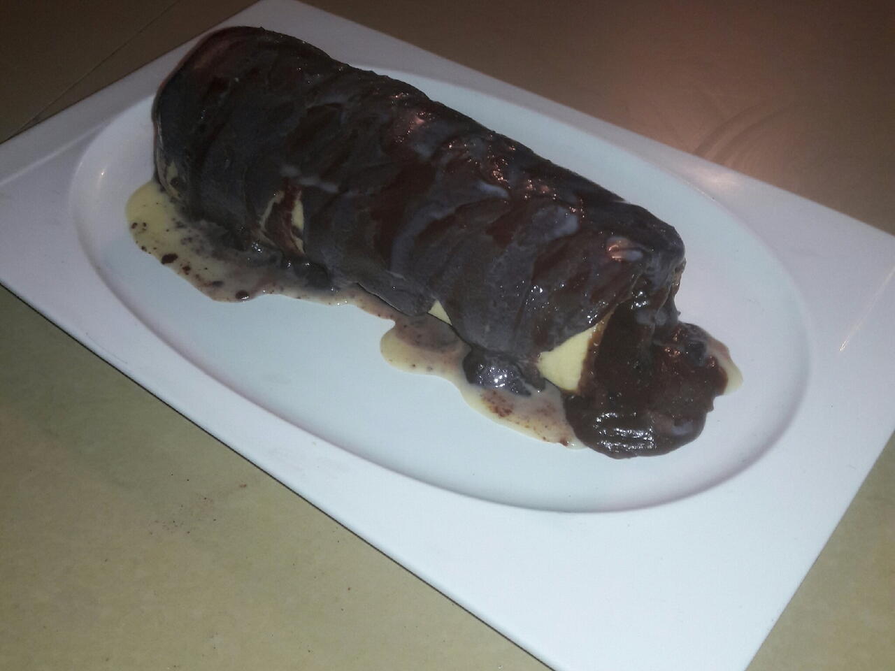 Doblar el bizcocho apenas salga del horno en un trapo para que este se adapte a la forma de un brazo, dejar enfriar.
