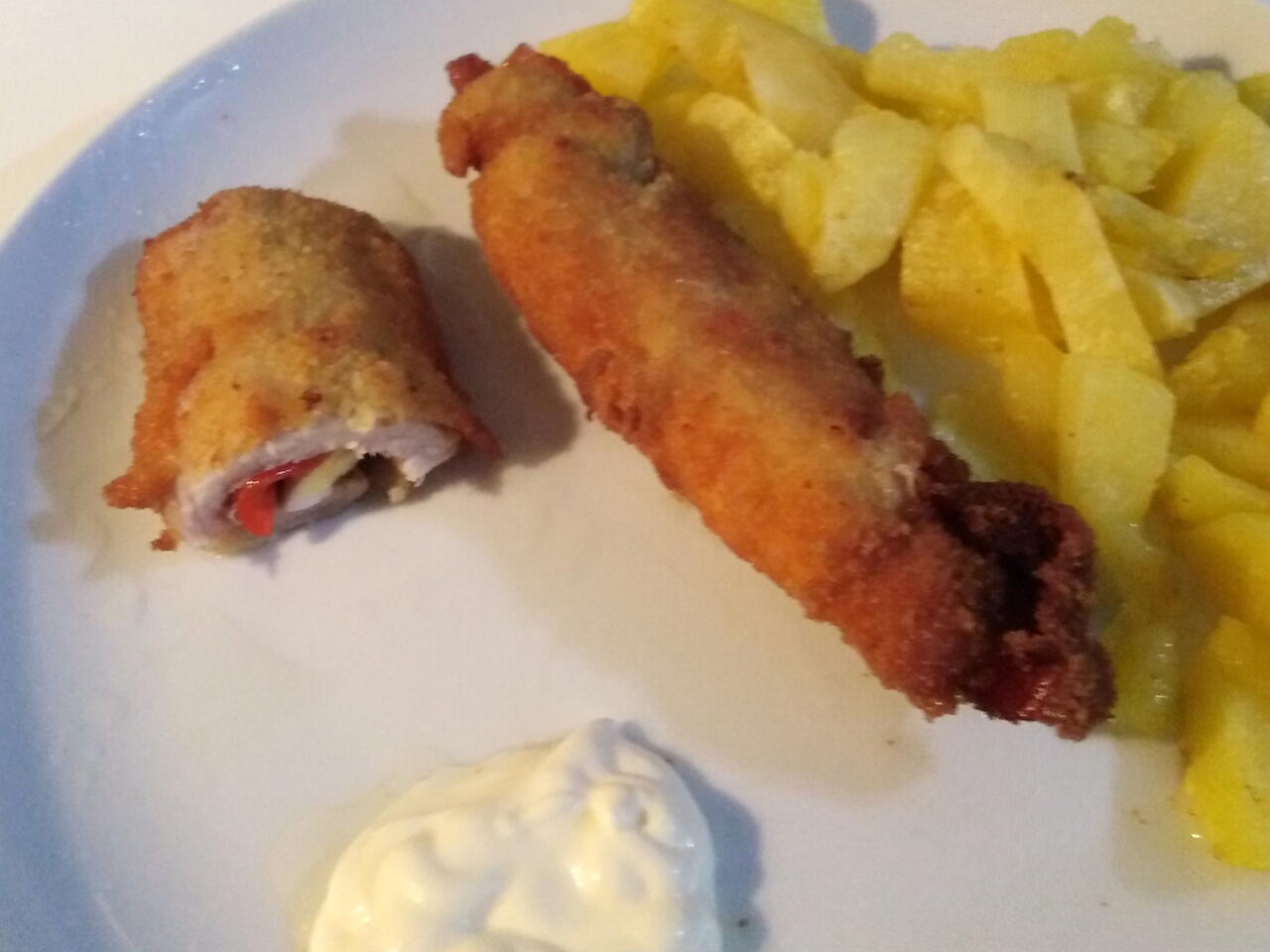 Una vez fritos, se suelen servir con unas patatas fritas y mayonesa y... A disfrutar!!!