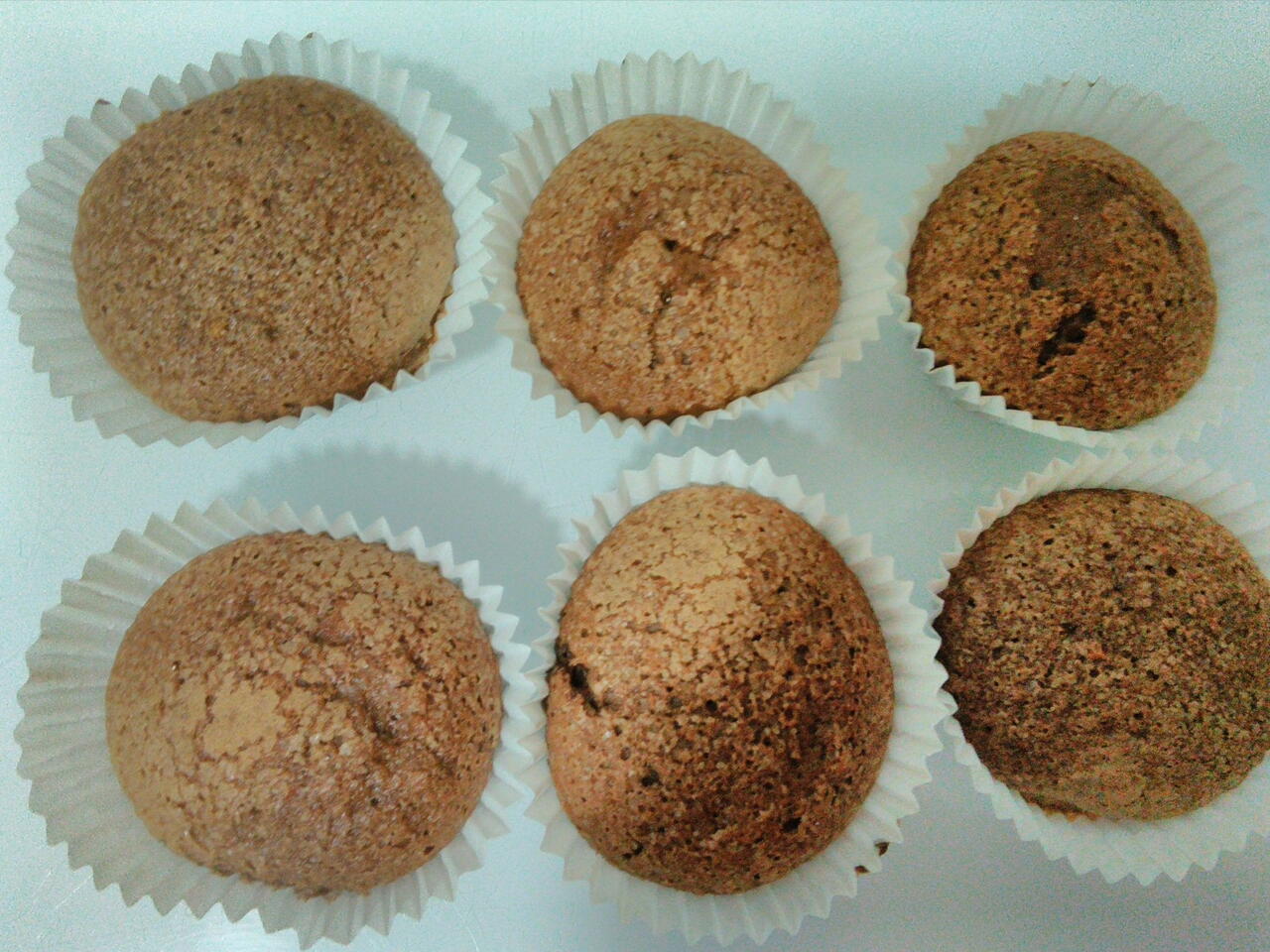 Poner el horno a 180°C. Llenar el molde de las magdalenas por la mitad. Meter en el horno