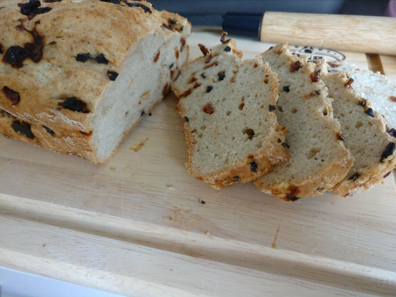 Esta vez he hecho un pan sin gluten de aceitunas negras y tomates, es muy rico para acompañar embutidos o con queso crema
