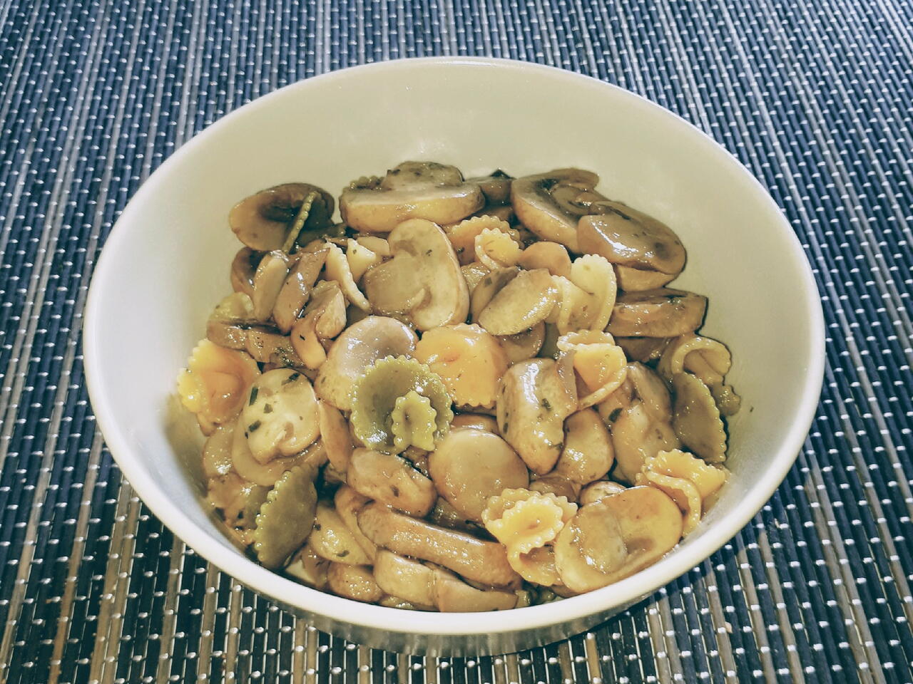 Hervimos la pasta y la dejamos al dente. Una vez hervida se la añadimos a los champiñones, movemos bien y en un par de minutos estará lista. Disfrutar!