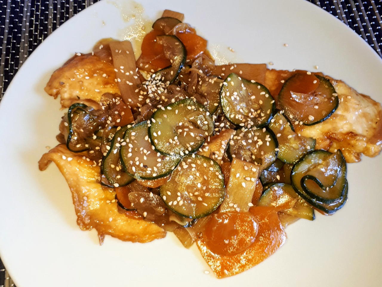 Servir el pollo y las verduras con un poco de Sésamo por encima! A disfrutar!
