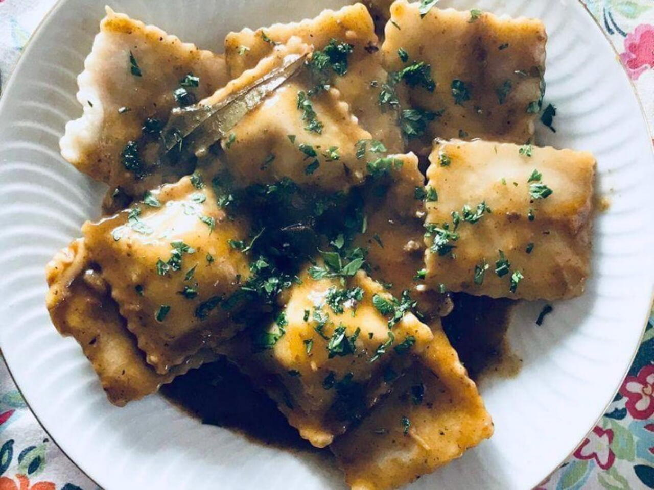 Ravioles de Brotola y Verdeo Con Demiglace de Cordero