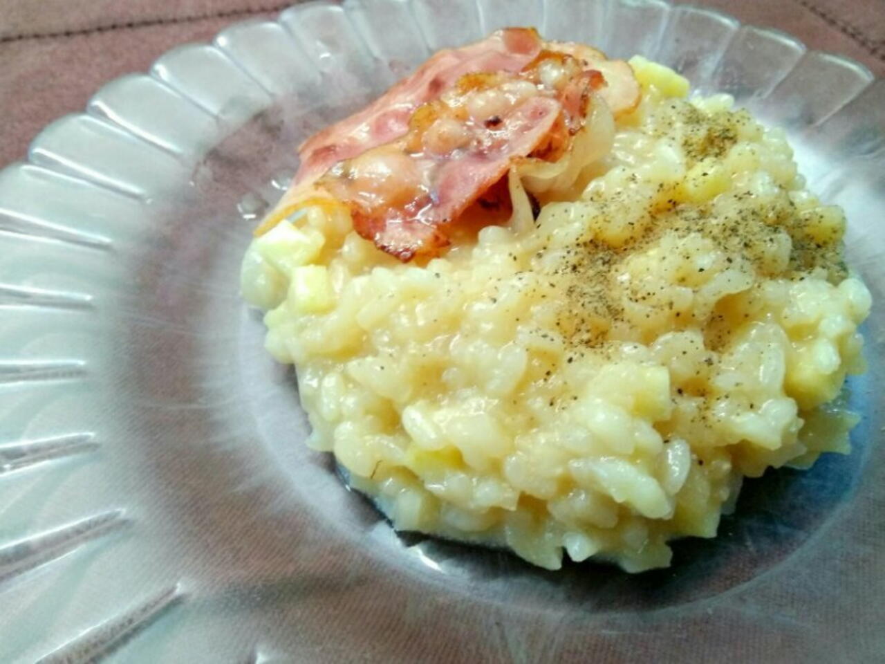 Cuando el arroz esté hecho, añadir los cubos de manzana y dejar cocer 2 minutos. Rectificar el punto de sal y acidez y añadir el queso