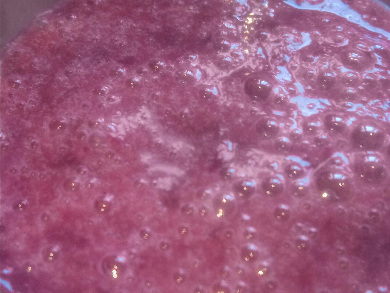 Metemos las uvas, el puñado de arándanos y la mermelada, en el vaso de la batidora, y mezclamos a velocidad media durante 1 min aproximadamente.