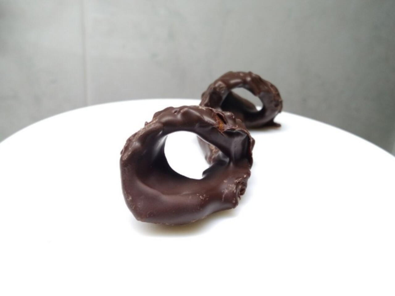 Cuando estén frías, fundir chocolate y bañarlas una a una, dejándolas encima de una rejilla. Hay que quitarlas de la rejilla rápido o se quedarán pegadas.