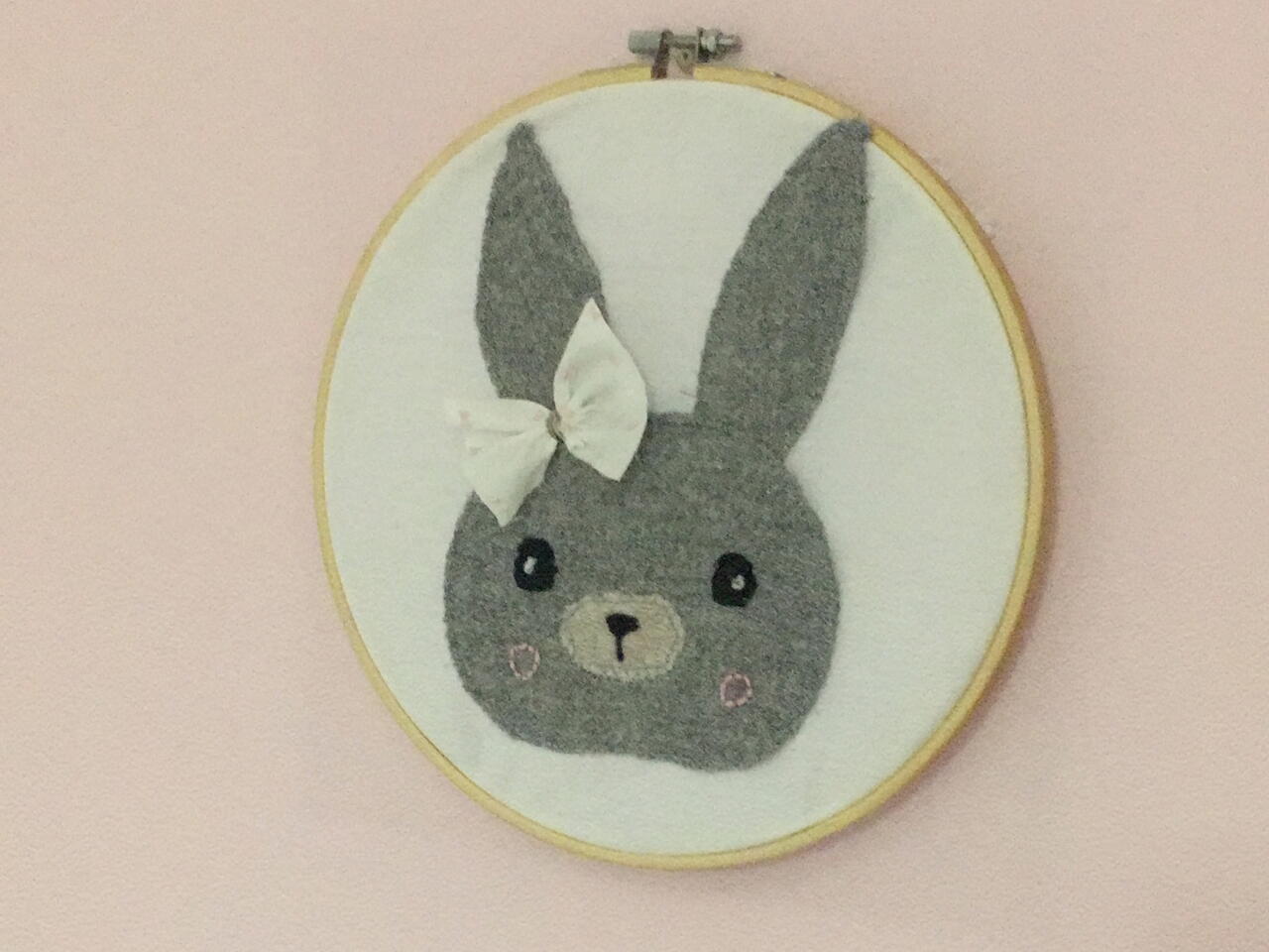 Recortar la cara y orejas coser en un trozo de tela y dibujar ojos y boca para luego bordar.