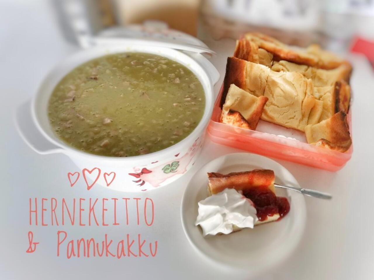 Kiehauta herneet lihaliemessä ja hauduta 1h. [Cook peas with broth for 1 hour.]