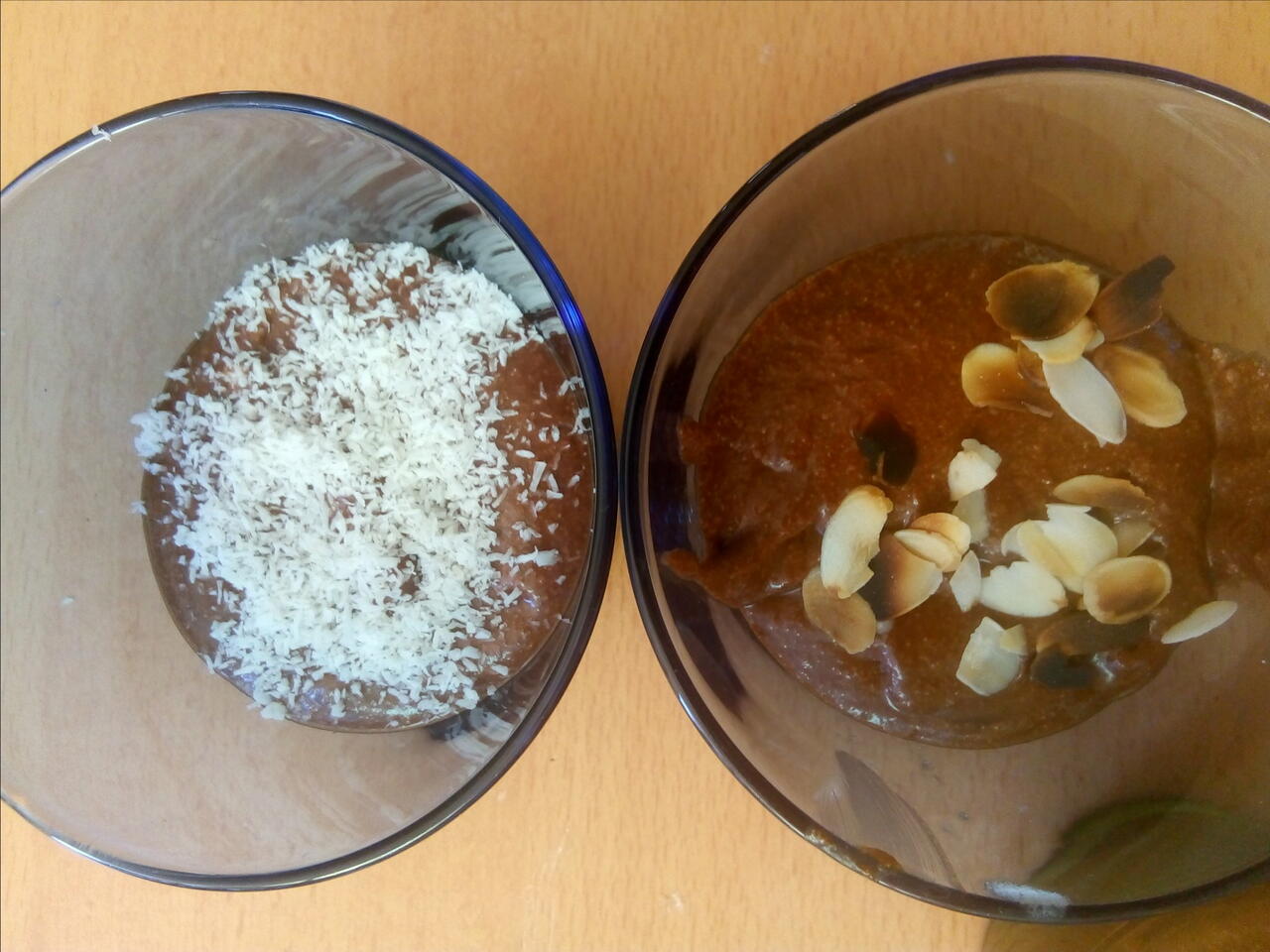 Mettre la préparation dans des verrines saupoudrez avec la noix de coco de râpé où les amandes grillées