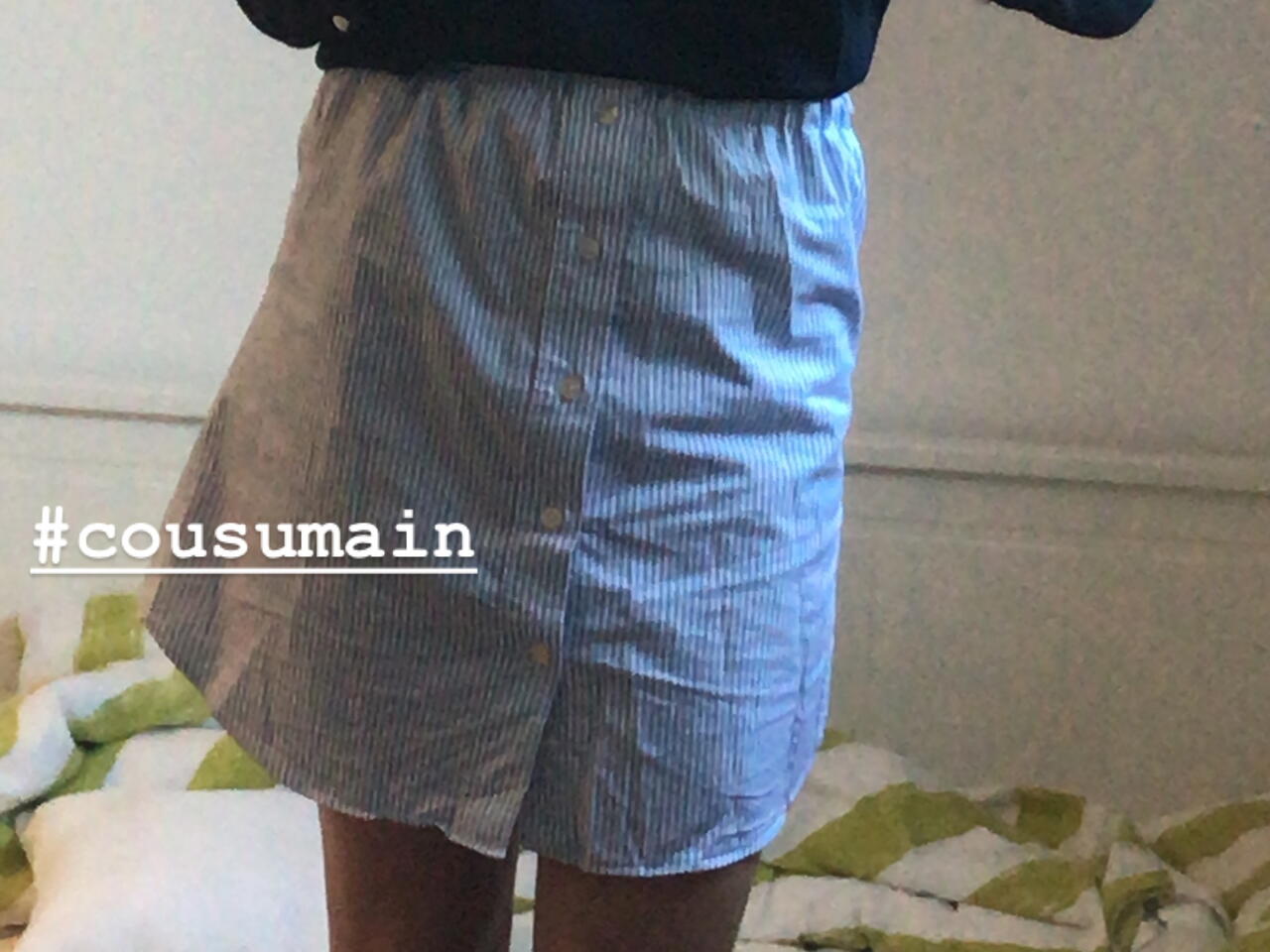 Coupez la chemise au niveau des manches (ligne blanche) et conservez la partie non hachuré