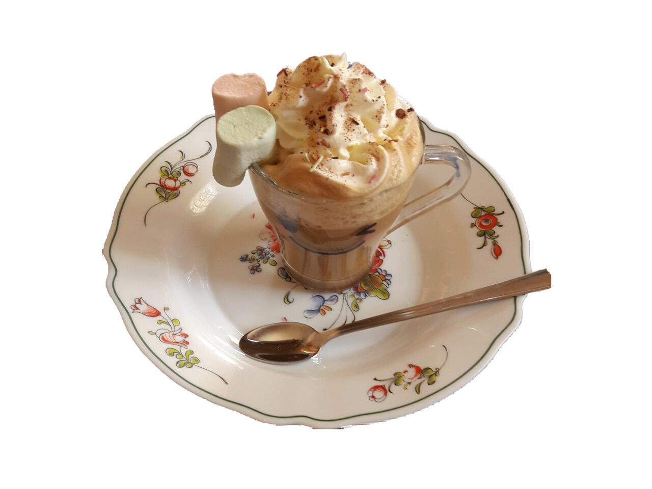 Vous pouvez également planter une paille dans la chantilly, placer des petites meringues sur la soucoupe tout autour du mug, ou mettre des carrés de chocolat sur la soucoupe pour accompagner le café.