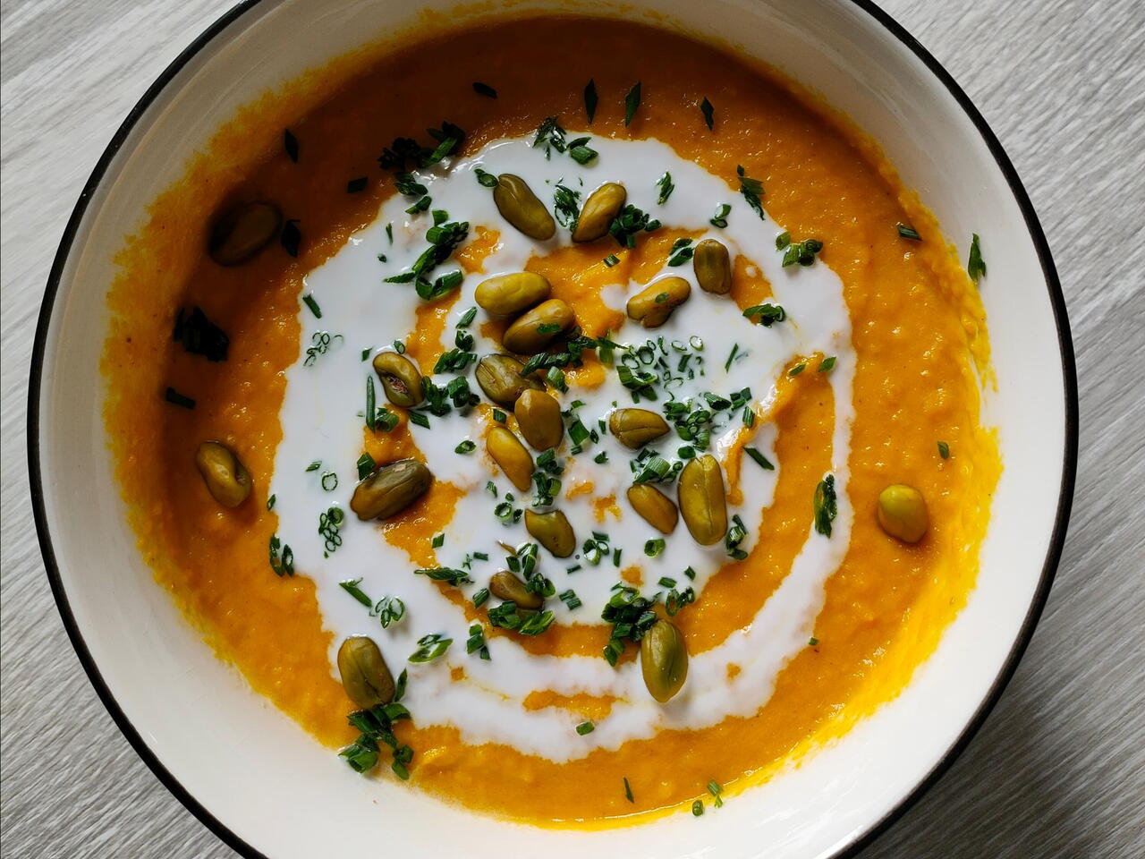 Chauffer l'huile et faire suer les carottes et le gingembre 20 minutes à couvert, avec le curcuma et un peu de sel. Remuer de temps en temps.