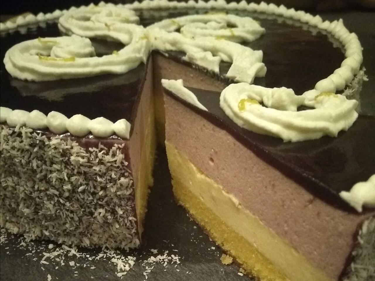 Votre bavarois framboise doit être bien pris vous pouvez donc ajouter le bavarois citron ( si vous souhaitez vous pouvez mettre de la noix de coco entre le bavarois F.R et citron )