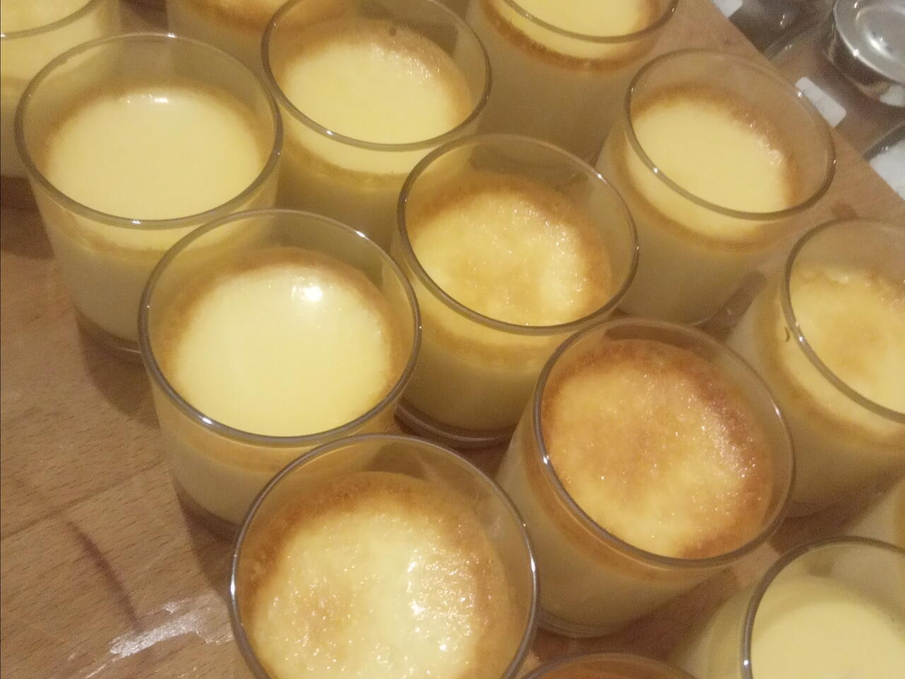 Faire un caramel : mettre les morceaux de sucre et l'eau et citron. Une fois le caramel prêt (attention à ne pas le faire trop cuire), le verser dans les verrinnes. Les faire tourner sur les parois du verre.