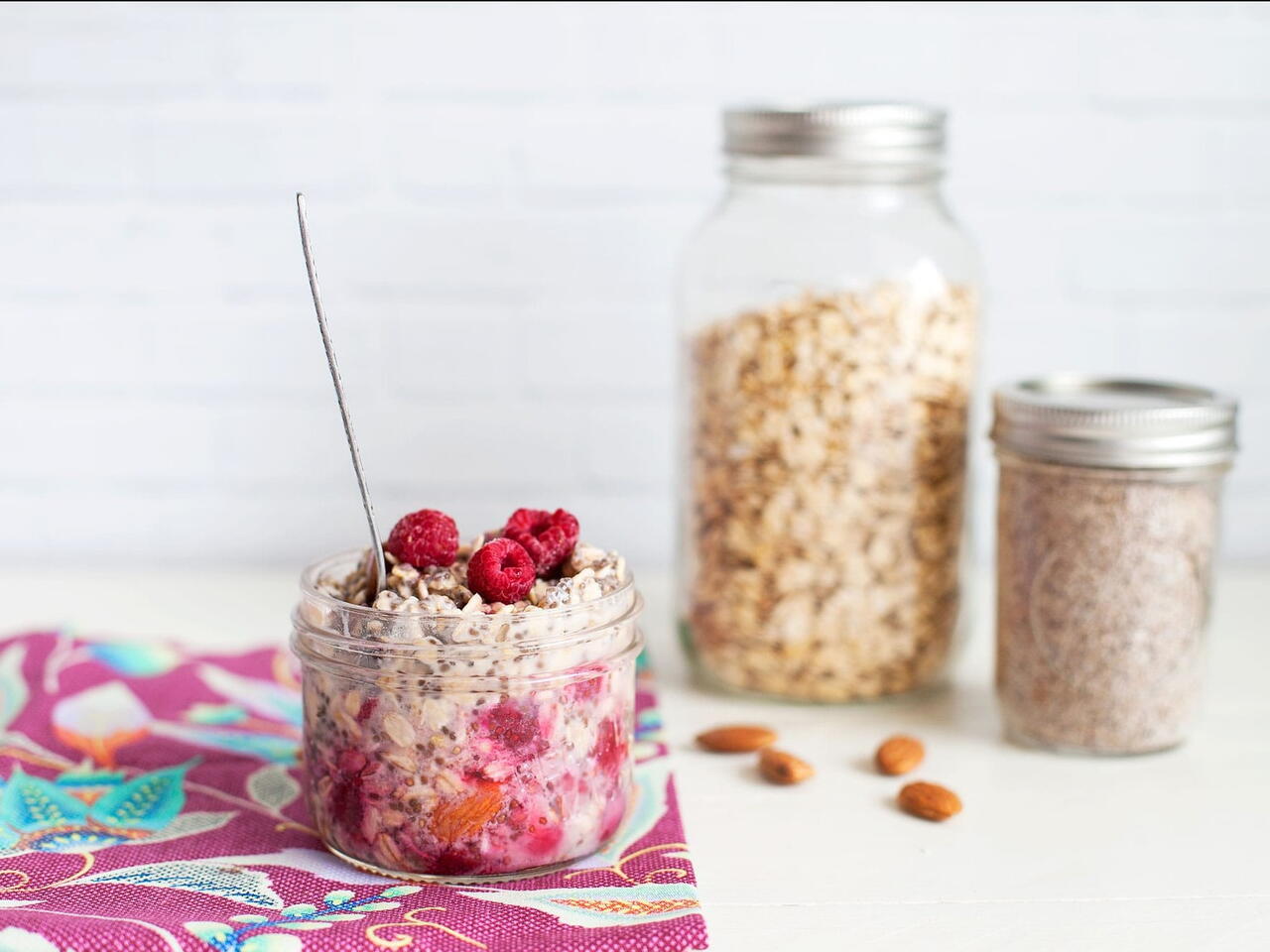 Versez dans un bol ou ramequin, ajoutez les framboises, les graines ou fruits secs, arrosez d'un filet de purée d'amandes et dégustez ! Si les framboises sont surgelées, elles vont décongeler tout doucement au contact du porridge chaud.