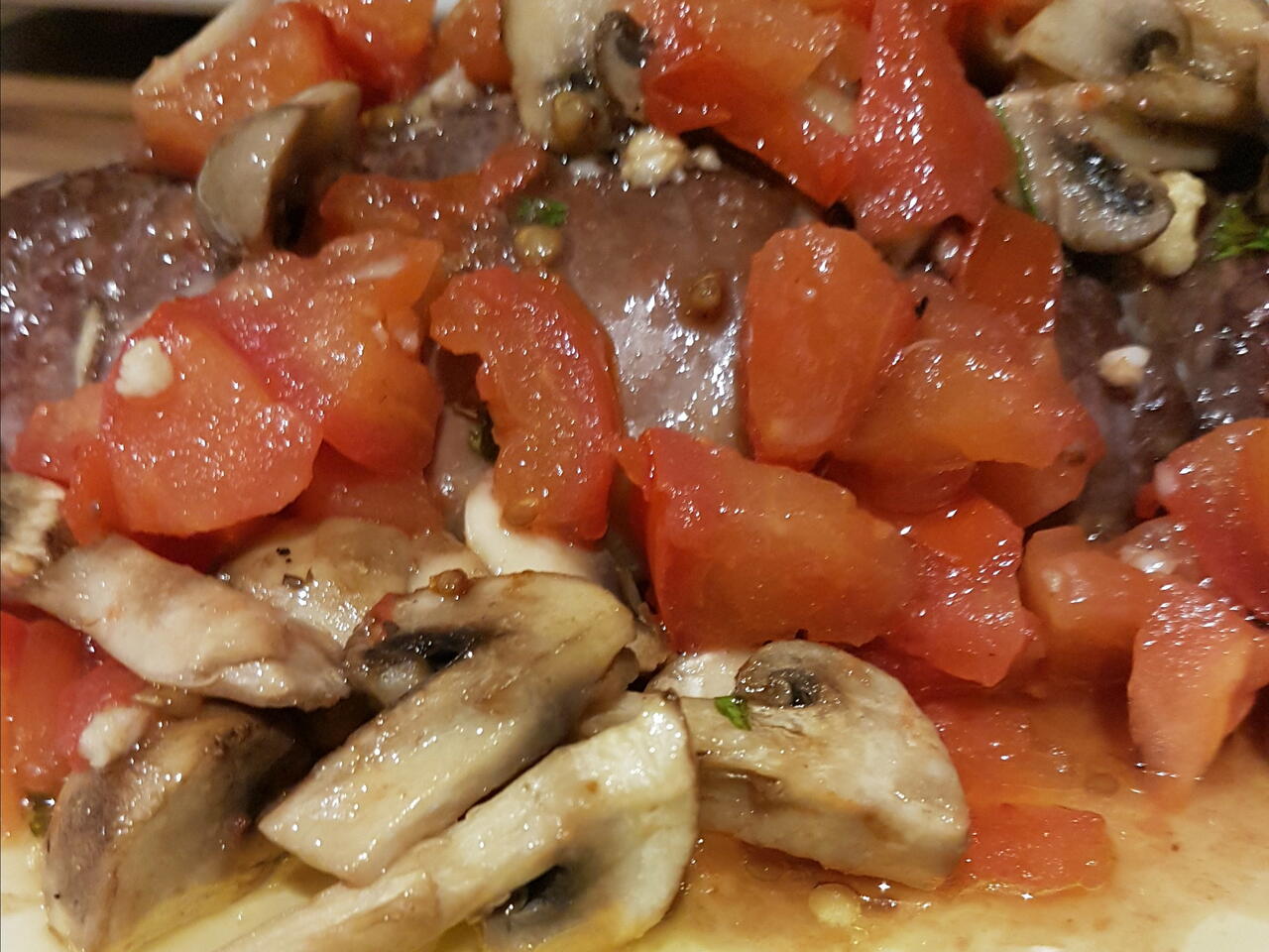 Coupé 120g de champignons de paris et une tomate bien mûre
