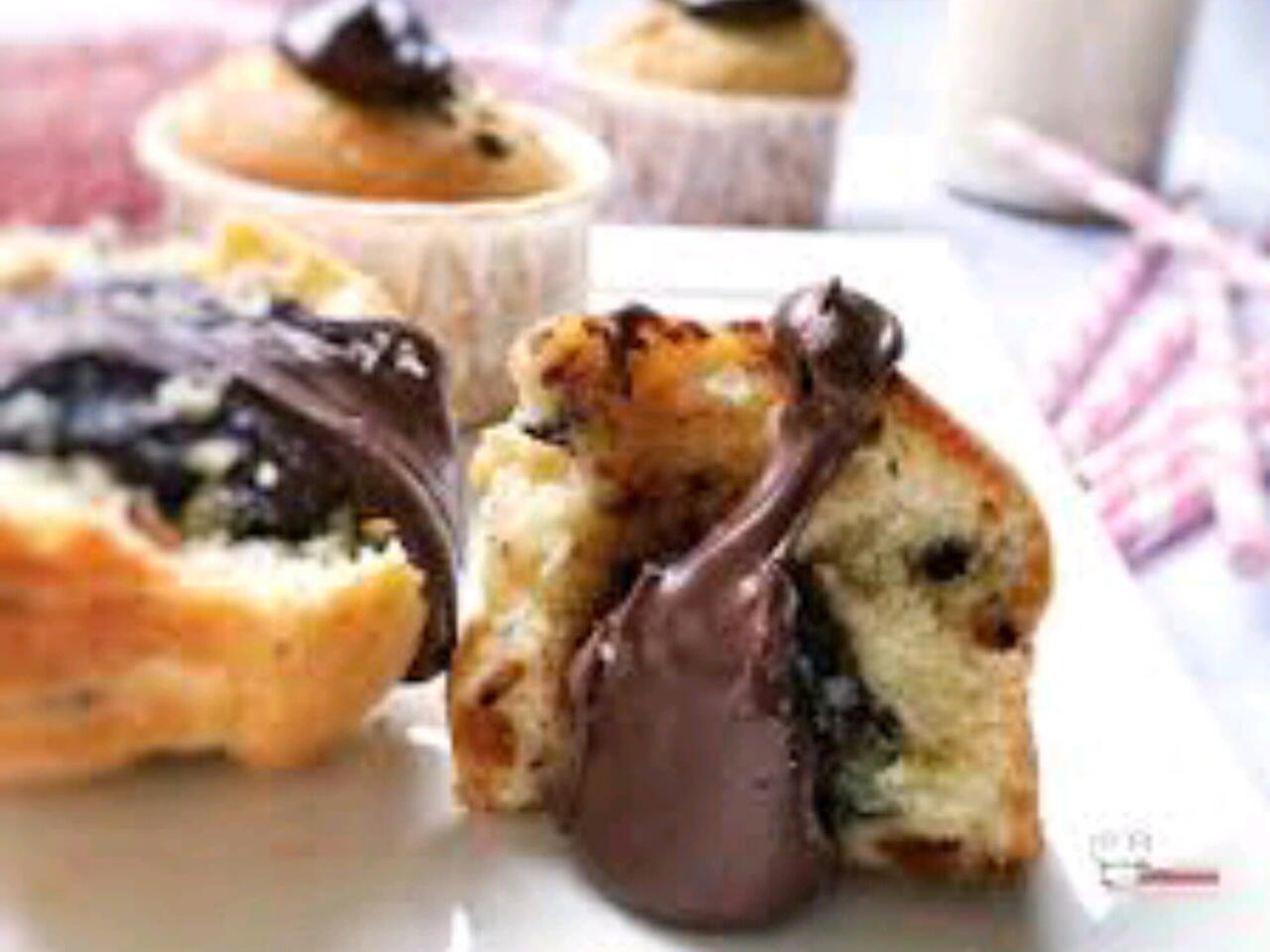 Ajouter la cuillére a soupe de Nutella. Malangez juste assez pour ne plus voir la farine. Le mélange doit être grumeleux. Repartissez la pâte dans un moule à muffins garnide caisettes. Ajoutez une cuilliere à café de nutella sur chaque muffin
