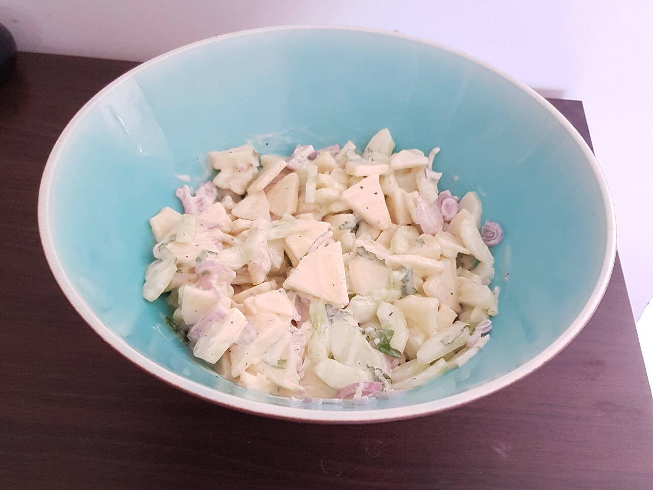 Pour la sauver mélanger le yaourt, la moutarde le citron, le sel et le poivre. Ajouter la sauce à la salade.